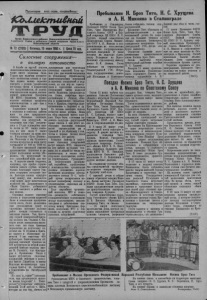 15 июня 1956 года, № 72 КОЛЛЕКТИВНЫМ ТРУД з; —-Письма в редакцию^=— Итоги зональных соревнований В прошлое воскресенье состоялась официальная встреча по розыгрышу кубка области между командами нашего и Андреевского района по волейболу. В состязании мужских команд со счётом 2:1 победили андреевцы. Среди женских команд победа присуждена волейбольной команде Карасук- ского района, т. к. андреевцы не выставили своей команды. Во вторник 12 июня проходило состязание футболистов нашего и Веселовского районов. Со счётом 2:0 выиграли карасучане. В этот раз игра наших футболистов прошла энергичнее и слаженнее. Хорошо играли защитники В. Скрипкин, А. Бу- нет, В. Ильин, полузащитник В. Тимофеев, нападающие В. Пономаренко, 0. Бурсевич, А. Проскурин. Футбольная команда нашего района вышла в полуфинал. И. Набатов, председатель райкома физкультуры и спорта. Подождите немного..." Проходя по территории детсада с сыном, я обратилась к сидящим на клумбе, старательно рассаживающим цветы воспитательнице младшей группы тов. Лузан и исполняющей обязанности зав. детсадом тов. Пожиловой: —Кто сегодня будет принимать ребят? —Подождите немного, воспитателя старшей группы пока нет, но она должна к 8 часам придти. Я пыталась возразить, что мнетоже к 8часам необходимо быть на работе, но мои возражения оказались неубедительными. Так, оставив сына посреди двора детсада, я ушла на работу. О подобном поступке я поставила в известность инспектора РОНО т. Полегенько. Но она ответила, что там работ■ ники все, кроме т. Пожиловой, временные, а поэтому спрашивать там не с кого. Не удивилась я такому ответу. В. Полегенько редкий гость детсада, а когда бывает там, то мало оказывает практической помощи в улучшении работы обслуживающего персонала. Плохо работает и родительский комитет. А сейчас многие члены его уже давно не водят своих детей в детсад. Родительский комитет во многом бы помог улучшить воспитательную работу среди ребят, посещающих детсад. Нет в детсаде и настоящего хозяина. Заведующая т. Шах- ман болеет, исполняет обязанности заведующей детсадом т. Пожилова. Однако согласно приказа зав. РОНО заведующей назначена т. Пчелинцева, но работает она воспитательницей старшей группы. Е. Кожемяк. По следам наших выступлений. „Самоводоснабжение" В 66 номере нашей газеты за 1 июня в письме под таким заголовком сообщалось о плохом водоснабжении рабочих молочноконсервного комбината, проживающих по Заводской улице. Как сообщил заместитель секретаря партийной организации т. Горб, факты, изложенные в письме, подтвердились. Водоразборная колонка вынесена на улицу для общедоступного пользования. За пятилетку производство на душу населения в СССР возрастает: чугуна—на 48 процентов, стали икаменного угля—на 39 процентов, электроэнергии—на 73 процента. Решение основной экономической задачи СССР не придет в порядке самотека, оно требует напряженного труда всего советского народа. Важнейшее значение в выполнении решений XX съезда КПСС имеет неуклонный рост производительности труда. За счет этого в шестой пятилетке должно быть получено более 80 процентов всего прироста промышленной продукции. Борьба за повышение производительности труда предпо лагает подъем технического уровня всего народного хозяйства, совершенствование техники, технологии и организации производства, быстрейшее вне