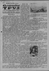/ Ъ р . ----- ~» Пролетарии всех страт," сое^ььйЛиск! 1C bU j£Jcrnu£H sai Орган Барасукского райкома Коммунистической партии Советского Союьа и районного Совета депутатов трудищахся Новосибирской области №81 (2112) I Пятница, 6 июля 1856 г. | Цена 15 коп' Пастух Большую задачу поставили перед собой работники животноводства района: они решили ^ надоить молока от каждой фу- v * " ражной коровы в колхозах по 1700 литров и в совхозах— по 3100 литров молока. Выполнение этого обязательства во многом зависит от пастухов. Пастух— одна из центральных фигур среди животноводов. От его умения, честного и благородного отношения к своему высокому долгу зависит увеличение надоев молока, настриг шерсти, рост привеса молодняка и сохранение животных. Пастухи колхозов имени Дзержинского Иван Александрович Гергерт и Александр Егорович Отто, «Новая семья» Иван Степанович Безалбаев, Дмитрий Григорьевич Кравчен- # ко, Александр Леонтьевич Коваленко, Алексей Платонович Трофименко, правильно используя естественные выпаса, систематически добиваются повышения надоев молока от коров. За 9 месяцев истекшего хозяйственного года они обеспе- чили получение свыше тысячи литров молока от каждой коровы. В социалистическом соревновании за высокие надои молока колхоз им. Дзержинского попрежнему держит первое место в районе. Здесь за истекшее время хозяйственного года надоено по 12,5 центнера молока от каждой коровы. Более высокие надои молока в июне получены в колхозах «Маяк Ильича», «Путь к коммунизму», им. Джамбула, им. Куйбышева и «Жол Сталина». Пастухи дойных гуртов в сельхозартели «Маяк Ильича» Петр Набоко и Михаил Хафизов уже не один год пасут скот. Они хорошо изучили повадки скота, совместно с зоотехниками составили определенный распорядок пастьбы, отдыха, поевия и доения коров, а агрономы помогли разбить выпа- са на загоны, которые стравливаются поочередно. Все это, а также тесная взаимосвязь пастухов с доярками позволили колхозу «Маяк Ильича» занять в социалистическом соревновании артелей района второе место после колхоза им. Дзержинского по надоям молока. В июне здесь получено от каждой коровы по 270 литров, а всего в этом хозяйственном году надоено по 11,5 центнера молока, что на 400 литров больше, чем на то же время в прошлом году. Колхоз выступает достойным претендентом на первое место. Хороших результатов по увеличению надоев в июне добились пастухи колхоза «Жол Сталина» Нуртай Мамбетов и Нунай Темербеков. Здесь надои за истекший месяц составили по 281 литру молока от каждой фуражной коровы. Опыт показывает что основ ным источником увеличения продуктивности молочного стада является правильная круглосуточная пастьба, строгое соблюдение распорядка дойки коров и обеспечение скота хорошими водопоями. Именно эти требования строго соблюдаются животноводами передовых колхозов района. Наши обязательства надоить в июне по 275 литров молока не выполнены многими колхозами, а также и в целом районом. Самые низкие надои молока за истекший месяц получены в колхозах «Красный путиловец», им. Агянгельды, им. Тельмана и им. Молотова. В сельхозартели им. Тельмана, например, в этом году надоено на 400 литров молока от каждой коровы меньше, чем на то же время в прошлом году, а в колхозе им. Молотова надои за июнь составили только 215 литров молока на корову. Между тем, правления этих артелей не за