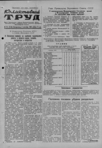 КОЛЛЕКТИВНЫЙ ТРУД 9 сентября 1956 года № 113 П а рт и й н а я жизнь Опираясь на коммунистов... Бурным было собрание партийной организации нашего совхоза накануне жатвы. Обсуждался важный вопрос—о сроках проведения уборки урожая и выполнении плана государственных поставок. И хо тя сошлись все на одном— завершить косовицу хлебов к 1 сентября, а до 15 числа этого же месяца рассчитаться с государством по поставкам зерна, но все же некоторые сомневались в реальности этих расчетов. Вот тут и пришлось опираться на тех коммунистов, которые заняты на решающих участках производства. Достигая высокой выработки за счет увеличения времени рабочего дня и наиболее производительного использования машин, коммунисты—комбайнеры Степан Максимович Никитенко и Алексей Михайлович Бойченко личным примером показывали другим, как надо бороться за хлеб в страдные дни. В дни жатвы общих партийных собраний мы не проводили. Однако у нас было законом подводить итоги работы на партийных собраниях непосредственно в тракторно-полеводческих бригадах. На таких коротких партсобраниях, которые в большинстве случаев проходили прямо под звездным небом, коммунисты давали отчет, ка к трудились они и что сделали в эти пять дней. Критика тут была весьма колючая и самокритика от всего сердца. К этому строгому, но правильному требованию, предъявляемому к коммунистам, безусловно прислушивались беспартийные и, нет сомнения, делали для себя соответствующие выводы. С первых же дней уборки коммунист комбайнер Степан Максимович Никитенко на самоходном комбайне стал давать высокую выработку. В два—три раза стал перевыполнять нормы на уборке урожая коммунист Алексей Михайлович Бойченко. Вскоре и многие другие беспартийные водители агрегатов сравнялись в выработке с коммунистами, а иные, вроде Кузьмы Егоровича Щанкина, и превзошли их. Агитколлектив партийной организации и редколлегия агитировали конкретными примерами из нашей работы. Так, когда комбайнеры тт. Щанкин и Никитенко достигли высокой выработки, сразу же был выпущен листок «Молния», рассказывающий об их достижениях.На призыв следовать их примеру откликнулись многие беспартийные комбайнеры совхоза. С того времени машины на уборке урожая работали кру глосуточно, а в числе передовиков появились новые имена: комбайнеры тт. Таран, Ильин и Трофимов стали убирать в сутки не менее 30 гектаров каждый. Во второй декаде августа четвертая ферма, где управляющим Василий Иванович Данько и бригадиром тракторно-полеводческой бригады Григорий Викторович Кацуба, завершила уборку урожая на всей площади и перевела свои машивы в другие бригады. В реальности выполнения решения партийного собрания и взятых обязательств о сроках завершения уборки теперь никто не сомневался. Но большие трудности сложились в организации хлебосдачи: на токах скопились большие массы хлеба, а транспорта, чтобы вывезти зерно на элеватор, не хватало. Как быть? Для обсуждения создавшегося положения собрались члены партбюро. Ясно одно—надо открывать глубинку. Но где.^ Наибольшее количество зерна скопилось на самом отдаленном участке—Красновке, что в 65 километрах от элеватора, и там нет ни одного подходящего помещения. Тогда решили засыпать хлеб в бунты прямо на току. Близость грубинки позволила нам значительно ускорить темпы сдачи хлеба государс