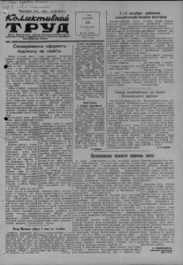 ~ С л лA) й <\лЛ*Л f f<y ( V ^ Пролетарии всех^ стран, соединяйтесь! 1ChUu£icrnu£Hsui Орган Карасукского райкома Коммунистической партии Советского Союва и районного Совета депутатов трудящихся Новосибирской области Своевременно оформить подписну на газеты Печать в нашей стране — большая общественная сила. Задача партийных организаций, хозяйственных руководит е л е й и всех коммунистов С о с то и т в том, чтобы использовать эту большую идеологическую, общественную силу как можно полнее для решения тех великих задач, которые поставлены перед советским народом решениями XX съезда КПСС. Сейчас в районе открылась подписка на газеты и журналы ва новый, 1957 год. Особенностью подписки этого года является то, что она началась значительно раньше по сравнению с предыдущим годом, чтобы дать возможность широким слоям населения своевременно оформить подписку на необходимые газеты и жур налы. последнее время значит е л ь н о выросло население нашего города в связи с развер нувшимисястройками, а также и сельской местности, куда ^прибыли многие для освоения целинных земель. Учитывая эту особенность, нам на новый у,.*1:од значительно увеличили количество экземпляров газет и журналов. Большим спросом у подписчиков и читателей пользуется газета «Правда». В этом году значительно лучше будет удовлетворен спрос подписчиков на эту газету, так как лимит на нее увеличен на 120 экземпляров. На 60 экземпляров больше будет реализована подписка на «Советскую Россию», значительно увеличен лимит на газету «Сельское хозяйство» и районную газету «Коллективный труд». Нынче также открыта подписка на' новые журналы «Сельское хозяйство Сибири» и «Агитатор». У нас нет сейчас ни одного уголка, куда бы не приходили газеты и журналы, нет ни одного дома, куда бы не доходило мобилизующее слово ^ Коммунистической партии. Однако не все секретари партийных организаций и руководители предприятий и учреждений, а также отдельные подписчики серьезное внимание уделяют своевременному оформлению подписки. В Карасукской машинно-тракторной станции, например, в прошлом году дирекция своевременно оформила подписку на жур налы «Огонек» и «Крокодил», но на технические и специальные газеты и журналы здесь подписку серьезно затянули и сорвали. Даже директор МТС т. Зайцев не подписался на газету «Сельское хозяйство». Хорошую помощь работникам связи в оформлении подписки в прошлом году оказали секретари партийных организаций молочно-консервного комбината, совхозов «Октябрь» и им. Дзержинского, Чернокурьинской МТС. Но в СМУ «Заготзерно», в автороте № И , райпотребсоюзе и Карасукской средней школе секретари партийных организаций, а также и администраторы остались в стороне от этой кампании и поэтому многие члены их коллективов и даже некоторые коммунисты не выписали газет. Особенно плохо во многих организациях в прошлом году оформлялась подписка на газету «Сельскор хозяйство». Не посчитали нужным, например, выписать эту газету председатели колхозов Н. Кравцов («Вперед к коммунизму»),С.Трунов (им. Куйбышева)и Т. Орлов («Новая семья»), а также некоторые агрономы. Мало внимания обращают секретари партийных организаций на то, как обеспечены подписными изданиями агитаторы. Задача состоит в том, чтобы каждый агитатор имел районную газету, областную или центральную газету и обязательно «Блокнот 