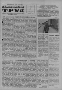2. Коллективный тру д 27 октября 1956 года, № 132 - VОтчитывается Непейпиво... О некоторых недостатках внутрипартийной работы в парторганизациях Загляните к нам на ферму Секретарь партийной организации степной экспедиции А. Непейпиво запустил массово-политическую и внутрипартийную работу. На отчётно- выборном партийном собрании он подверг себя «резкой самокритике». —За отчётный период мы провели всего... два собрания. Кто в этом виноват? Я. Коммунисты не занимались пар тийной учебой, не работали агитаторы, не читались лекции и доклады, не выпускались стенные газеты, запущено ведение партийного хозяйства... Да мало ли чего другого не делалось у нас? И во всём этом, прежде всего, виноват я, ка к секретарь парторганизации. Раскаивания «грешника» помогли: работу секретаря партийной организации А. Непейпиво признали удовлетворительной и его вновь избрали секретарём. Прошедшие отчетно-выборные партийные собрания показали, что проведенная работа по претворению в жизнь решений XX съезда партии способствовала росту активности членов и кандидатов партии, повышению боеспособности первичных партийных организаций в решении приктических задач, стоящих перед колхозами, МТС, совхозами и промышленными предприятиями района. Партийные собрания стали проводиться более регулярно, на обсуждение их выносились наиболее важные вопросы внутрипартийной работы, в обсуждении участвует большее число коммунистов. Об этом свидетельствует тот факт, что на прошедших отчетно-выборных партийных собраниях присутствовало около 85 проц. коммунистов из всех состоящих на партийном учете и более половины из них выступили в прениях. Главное, что характеризует уровень партийного собрания— это развернутая критика и самокритика, решимость коммунистов исправить выявленные недостатки у коллектива в целом и у каждого коммуниста в отдельности. Выступающие на собраниях коммунисты главное внимание сосредотачивали на нерешенных задачах, указывали пути улучшения деятельности партийных организаций.К таким можно отнести партийные организации колхозов им. Андреева (секретарь парторганизации т. Киба), «Маяк Ильича» (т. Рассказов), Октябрьской МТС (т. Полуэктов) и некоторые другие. Острую непримиримость к недостаткам, высокую требовательность к секретарям партийных организаций высказали коммунисты партийных организаций колхозов им. Калинина (бывший секретарь т. Леонов), им. Куйбышева (т. Скопич), Карасук- ской МТС (т. Титоренко). Существенные недостатки в работе партийных организаций по руководству комсомолом были отмечены коммунистами в парторганизациях молочно-консервного и овощесушильного комбината (секретарь парторганизации т. Близнюк), пункта «Заготзерно» (т. Бо- гойко), пищекомбината (т. Гончарова). Секретари этих партийных организаций недооценивали силу комсомола и его роль в решении хозяйственных и политических задач и ка к результат— здесь внутрисоюзная работа находится в запущенном состоянии. Среди других вопросов внутрипартийной работы следует отметить партийное руководство первичными профсоюзными организациями. XX съезд партии указал на необходимость улучшать и совершенствовать работу профсоюзов. Их деятельность должна быть подчинена борьбе за претворение в жизнь политики партии и правительства, направленной на дальнейшее усиление могущества наш
