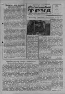 2. КОЛЛЕКТИВНЫЙ ТРУД 2 ноября 1956 года, № 134 К о м м у н и с т ы в п е р е д и Приближается 39-я годовщина Великой Октябрьской социалистической революции. Высокими показателями в выполнении производственных планов и заданий встречает всенародный праздник коллективКарасукской автороты№11. План по перевозке грузов это автотранспортное хозяйство за 10 месяцев текущего года перекрыло почти в два с половиной раза. За этот период авторота дала более полумиллиона рублей прибыли. Себестоимость перевозки грузов против плановой снижена на 4 процонта. Трудовые успехи не пришли сами собой, они явились результатом напряженного труда всего коллектива автороты. Большую роль в мобилизации коллектива водителей автороты на выполнение производственных планов по перевозке грузов, основным из которых является хлеб, сыграли партийная, комсомольская и профсоюзная организации. Оградно отметить, что впереди идут коммунисты шоферы И. Соловьев, выполнивший за 10 месяцев почти полторыгодовых нормы, В. Иванов, не отстающий в соревновании с ним, Я. Браванов, М. Выдрин, Т. Попов и М. Морозов, также значительно перевыполнившие годовой план перевозки грузов. Все эти шофёры-коммунисты награждены почетными грамотами облисполкома. В решении всех хозяйственно-политических вопросов партийная организация автороты опиралась на широкий беспартийный актив и всю свою работу строила в тесной увязке с местным комитетом и комсомольской организацией. Еще задолго до начала массовых перевозок зерна нового урожая на открытом партийном собрании был рассмотрен вопрос о готовности автотранспортного хозяйства к уборочной кампании. Партийная бргани- зация развернула среди коллектива автороты широкое социалистическое соревнование, положив в основу решение этого собрания. Каждому шоферу был доведен план на месяц, на период уборки и хлебосдачи и в целом на год. О результатах ежедневной выработки каждого водителя сообщалось на общей таблице показателей для всеобщего обозрения, передовики заносились на доску почета и о них писали в газетах и «боевых листках». Перестроила свою работу за последнее время и стенная печать. Раньше часто от водителей можно было слышать: «Скучная наша стенгазета». Действительно, стенная газета «Автотранспортник» не отражала по-настоящему жизни коллектива. Критические замечания коммунистов и беспартийных членов коллектива автороты учла партийная организация и подсказала редактору газеты коммунисту т. Дентовскому, как надо строить работу редколлегии газеты. И положение было поправлено. Передовые статьи газеты стали отражать действительное положение в автороте и призывать водителей на выполнение тех задач, которые были поставлены перед коллективом. В одномиз номеров, например, рассказывалось о том, как водитель И. Конта- рев выполнил за август почти четыре месячных плана. В два с половиной раза перевыполнили задания шоферы В. Ко зулин и А. Макеев. Об их опыте также рассказала газета. Бесперебойная работа автопарка во многом зависит от своевременного и качественного техухода-* за машинами и ремонта их. Поэтому газета систематически помещала заметки о ремонтниках. Номер газеты, вышедший в конце сентября, рассказывает о хорошей работе слесаря т. Усова, плотника т. Бабинова, медника т. Сайко, кузнеца т. Барашкова, которые быстро и качественно прои