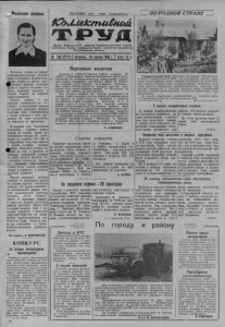 Молодая доярка Несмело пошла на ферму восемнадцатилетняя колхозница Екатерина Жерноклев. Д )и ть коров не умела, име- ^Р только крепкие молодые руки и горячее желание помочь родному колхозу в общей борьбе за подъем животноводства. Юность дерзка. И она дерзала, стремилась не отставать в получении надоев от лучших опытных доярок колхоза. Она советовалась с ними, училась у них, трудилась. не зная усталости, не считаясь со временем. В первый год Екатерина научилась хорошо доить коров, но надои были небольшими—около 16 центнеров от коровы. Но уже в следующем году она вышла в число лучших доярок ^ийона . Молодая доярка на ^Кила за год в среднем от каждой фуражной коровы по 2127 литров молока. Ее, скромную сельскую девушку, недавно окончившую семилетнюю школу, хорошо знают и гордятся в родном , колхозе и районе. Много молодых доярок пришло за последнее время на фермы других колхозов района. По праву называется молодежной ферма второй комплексной бригады колхоза „Путь Ленина1. Здесь 8 молодых доярок. А всего на фермах колхозов района работает более 150 молодых доярок. Они с молодым задором, с кипучей энергией борются за повышение продуктивности мо лочного стада. Честь и слава им, скромным и беспо койным молодым животно водам! На снимке: Е. ЖЕРНОКЛЕВ. Пролетарии всех стран, соединяйтесь! 1^ии£к^тш6м€1й по родной . . . Орган Карасукского райкома Коммунистической партии Советского Союва и районного Совета депутатов трудящихся Новосибирской области № 140(2171)1 Пятница, 16 ноября 1956 г. I Цена 15 к. Передовые водители Н е л е г к а в осенний период рабо та шофера . Но „ З И С “, управляемый Иваном П е тровичем Н и к и т е н к о , н е см о тря на о с е н н е е н е н а с ть е , преодолевая д о р о ж ные ухабы, е ж е д н е в н о д о с т а в л я е т з ерно из гл уб ин ки к о л х о з а „Путь Л е н и н а " на элеватор . П о л т о р ы - две нормы— т а к о в р е з у л ь т а т к а ж д о г о дня. Не одну с о т ню тонн г р у з а п е р ев е з шофер И. Н и к и т е н к о за де ся ть лет работы на ав том ашине . К а к л у чш е го шофера , е го в с е гд а направляют на самые о тв е т с тв е н ны е у ч а с т к и работы .В период убор ки у р о ж а я он возил з е р н о от комб а й н а и рабо тал на выво з к е хл еб а гос уд ар с тв у , выполняя по 2 — 3 нормы в день . В этом году его машина сдел ал а 4 4 7 4 6 то н н о - к и л ом е т р о в бе з замены резины. Иван П е трови ч бор е т ся з а удлинение м еж р ем о н т н о г о с р о к а пр о б е г а машины, добиваясь э кономии средств . Н а т е х у х о д е и р ем он т е им с э кономлено 2 3 0 0 рублей . Прим ерно т р у д я т с я и высокопрои зводи тельно используют машины шоферы Г. Муравьев , А. Бендер , И. М али к . Все они з а трудовые успехи и э ко н ом ию ср ед с т в н а г р аж д е ны почетными г р амо т ами М ТС . Г. АНДРЕЕВА. Семена очищены К О Н К У Р С на лучшее литературное , произведение Редакция газеты „Коллективный труд* объявляет конкурс на лучшее литературное произведение (рассказ, очерк, фельетон, стихо- творение)на темы о делах и людях сельскохозяйственного и промышленного производства наших дней. Редакция приглашает читателей принять участие в конкурсе. Лучшие произведения будут напечатаны в газете. Устанавливаются 3 премии: первая—300 рублей, вторая—200 рублей и третья—100 рублей. Кроме того, за опубликованные произведения в обычном порядке будет начислен гонорар. Срок представления произведений на конкурс—по 20 декабря. Итоги будут объявлен
