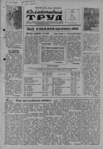 14 декабря 1956 года, № 151 КОЛЛЕКТИВНЫЙ ТРУД 3. Теплую и сытую зимовку обеспечили общественному скоту вдлхозники сельхозартели имени Сталина К п о л ь с к о г о района курганской области. Заложено 4 тысячи тонн силоса. На каждую корову приходится по 10 тонн сочных кормов. Сейчас колхозники заканчивают подвозку грубых кормов к животноводческим фермам. На снимке: скирдование сена на животноводческих фермах колхоза имени Сталина. Фото С. Юдина. Фотохроника ТАСС. 1'ЛЛЛЛЛЛЛЛЛЛЛЛЛ/ Общественному скоту— заботливый уход Работники животноводства первой комплексной бригады 'А х о в а имени Сталина с пер- дней зимовки скота борются за успешное ее проведе ние. Многие из них добились заметных успехов в развитии животноводства. Ухаживая за молодняком 1956 года рождения. П. Карась и Н. Козачек взяли обязательство без единого случая падежа вырастить всех 80 телят, закрепленных за ними, и передать их в хорошей упитанности. Обязательн о претворяется в жизнь. Уже с октября всех телят наряду с пастьбой подкармливали кукурузным силосом, хорошим сеном и концентратами. Помещение, где находится молодняк, отремонтировано, утеплено и разбито на несколько клеток с таким расчётом, чтобы давать корма раздельно по небольшим группам (по возрасту), что также дает положительный результат. Молодые телятпипы комсомолки Надежда Мадура и Мария Мороз в прошлом году сохранили весь полученный новорожденный молодняк без единого случая падежа, за что были премированы правлением колхоза, награждены почётными грамотами райисполкома и в порядке допол пительной оплаты получили по шестимесячному теленку. Хорошо трудятся они и в этом хозяйственном году. Своими силами молодые животноводы помазали и побелили телятник. Приняли уже попять новорожденных телят. Благодаря заботливому уходу телята имеют хорошую упитанность, содержатся в чистоте. В нашей бригаде есть все возможности получить высокий доход от животноводства, и мы принимаем меры, чтобы добиться этого. По каждой группе животных составлен распорядок дня, который все работники соблюдают. Нынче вырыли дополнительно пятый колодец и механизировали подачу воды из него. Сено и силос полностью находятся у скотопомещений и переданы на подотчет фуражиру, который отпускает корма по весу, согласно утвер жденного рациона. Усиливается подвозка соломы на фуражные склады. Специально выделенная бригада во главе с молодым трактористом Э. Шмидтом на тракторе «ДТ-54» уже подвезла 1100 центнеров соломы. На этом же тракторе накошено для строительства 400 кубометров камыша, ведется заготовка топлива для кормозапарника и подсобных животноводческих помещений. На ферме оборудован и радиофицирован красный уголок. Животноводы бригады борются за благополучное проведение зимовки скота. Д. ПИСКЛОВ, бригадир первой комплексной бригады. В районе идет месячник книги Книжная полка В Карасукской магазине книготорга имеется в большом выборе художественная литература: И. КОЗЛОВ. В крымском подполье. Цена 9 р. 60 к. И. МИХАЙЛОВ. Над картой ролины. Цена 13 р. 20 к. СЕРГЕЕВ-ЦЕНСКИЙ. Избранное. Цена 12 р. А. ЧУКСИН. Однополчане (квига вторая). Цена 5 р. 20 к. ПАНТЕЛЕЕВ. Повести и рассказы. Цена 11 р. 70 к. И. МАРКИН. На берегах Дуная. Цена 9 р. 50 к. ! РЕШЕТНИКОВ. Избранные I произведения в двух томах. Цена 24 р. 25 к. Т. НЕВЕРОВ. Записки о прошлом. Цена 4 р. 75 к. В. КОЖЕВНИКОВ. Рассказы и 