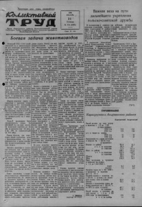 2. КОЛЛЕКТИВНЫЙ ТРУД 21 декабря 1956 года, № 154 В профсоюзных организациях идут отчеты и выборы Почему т. Кравцова не избрали председателем? Бурным было отчетно-выбор- ное собрание профсоюзной организации «Заготскота». После отчетного доклада председателя местного комитета т. Кравцова, добросовестно перечислившего ряд недостатков в профсоюзной работе, но ни одним словом не обмолвившегося о том, что же пред принималось для их устранения, активно начались прения. Все выступавшие отмечали, что это не недостаток доклада, а упущение в работе местного комитета и его председателя т. Кравцова. В начале года, например, были заключены договоры социалистического соревнования между участками и отдельными рабочими, но после этого о них никто так и не вспомнил— ни администрация, ни местный комитет. У многих рабочих «Заготскота» плохие бытовые условия, но об улуч шении быта рабочих также никто не беспокоился: председатель местного комитета т. Кравцов, видимо, не хотел испортить добрые отношения с управляющим т. Шашелем. Работу местного комитета резкой критике подвергли члены союза тт. Супрун, Рудаков и Мадеев. Они отметили, что мостком также, как и администрация плохо заботятся о ремонте ведомственных квартир. На центральной усадьбе имеется общежитие для рабочих, которое вот уже два года подряд не ремонтируется и совсем обветшало. Здесь нет света, хотя совсем рядом проходит электролиния, не подведено радио. Рабочие по всем этим вопросам не один раз обращались и к т. Шаше- лк>, как управляющему, и в местком профорганизации, но положение не изменилось. — «Что его ремонтировать?— Оно скоро развалится»,— отвечали нам всякий раз, когда мы обращались за помощью,— говорит т. Рудаков,— И вот в течение двух лет и те и другие в ожидавии, когда барак развалится сам, ничего не де лают по его ремонту или строительству нового общежития. — Нашей молодежи негде проводить свой досуг,— говорит член союза заведующий Буденновским участком т. Ка- пицкий.— Летом мы начали строить красный уголок, но местный комитет и администрация «Заготскота» нам ни в чем не помогли в завершении этого строительства. Сейчас мы не имеем никакого уголка, где бы могли дать наряды на работу, Никто здесь не беспокоится о создании условий для нормального кинообслуживания населения отдаленных участков. Так, нынче в Буденновском участке кино демонстрировалось всего два раза, а в Нестеровском— ни одного. До настоящего времени не изжита волокита с начислением зарплаты и нормированием труда рабочих, Чтобы проверить правильность начисления заработной платы, рабочим приходится по несколько дней проводит в бухгалтерии. Так, комбайнер т. Соце- вич проработал месяц на разных работах, а учетчик т, Таран наряды в бухгалтерию подал только за 10 дней. Более пяти раз т. Соцевич обращался в контору с просьбой, что бы разобрались в этом, а также начислили причитающийся ему хлеб, как комбайнеру, но так и не добился ничего по сей день. — Много у нас рабочих, ко торые добросовестно трудятся,— говорит член союза т. Цыганенке,— но мы о них ничего не знаем. Доски Почета нет, стенгазеты не выпускаются. Верно, администрация иногда ПО ГОРОДУ И отмечает лучших рабочих, премирует их, но никогда при этом не считается с мнением местного комитета, а по этому бывают случаи, что поощряются рабочие, которые име ют грубые на