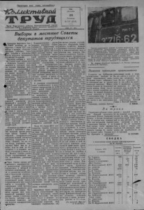 2 КОЛЛЕКТИВНЫЙ ТРУД 28 декабря 1956 года, № 157 Исполком отчитывается о своей работе На сессии Благодатского сельского Совета с отчетным докладом о работе исполкома выступил председатель Совета т. Борблик. Он отметил, что многие депутаты, выполняя свой депутатский долг, оказали большую практическую помощь колхозам в решении хозяйственных задач. Это позволило сельхозартелям Совета успешно провести многие сельскохозяйственные работы. Be сенний сев в истекшем году был во всех колхозах проведен более организованно и в лучшие агротехнические сроки, в результате чего получен значительно больший урожай зерновых, чем даже в лучший урожайный 1954 год. Несмотря на недостаток грубых и концентрированных кормов, в прошлую зимовку в колхозах не было массового отхода скота. Большую помощь оказали депутаты Совета в размещении Государственного займа и в сборе обязательных платежей с населения. Но в работе Совета еще много недостатков. Плохо работают постоянные комиссии Совета. Руководители комиссий тт. Коростылев, Ларькин и Рогожин свою бездеятельность оправдывают чрезмерной занятостью на своей основной работе. Но и исполком Совета не оказывал практической иомо щи в налаживании работы постоянных комиссий и не спрашивал по-настоящему с тех депутатов, которые уклонялись от выполнения своих депутатских обязанностей. Председатель колхоза им. Тельмана член исполкома сельского Совета т. Крупа не сумел в истекшем хозяйственном году мобилизовать усилия всех колхозников на борьбу за высокий урожай. В результате этого колхоз получил нынче самый низкий урожай зерновых в зоне Карасук- ской МТС, не выполнил план хлебозаготовок. В животноводстве здесь также значительно снижена продуктивность. Например, надой молока на одну фуражную корову по сравнению с прошлым хозяйственным годом снижен на 400 литров. В колхозе плохо поставлен учет поступающего молока, что создает условие для его разбазаривавия. Факты такие имеются. Сливкоот- деленщик поселка Покровки самочинно, без разрешения правления колхоза раздает артельное молоко жителям поселка под предлогом «позаим- ствования». Низкие показатели как в полеводстве, а также и в животноводстве в прошлом году обязывают правление артели в данное время надлежащим образом организовать борьбу за будущий урожай и повышение продуктивности животноводства. Однако в колхозе им. Тельмана до сего времени не очищены семена, не вывозятся на поля удобрения, не задерживается снег, в бригаде № В скот не обеспечен водопоем. Серьезные недостатки имеются в работе сельских организаций, призванных обслуживать население. Благодатское сельпо (председатель т. Коростылев) с перебоями снабжает жителей мелких населенных пунктов товарами первой необходимости. Плохо работает сельский клуб в с. Благодатном, которым заведует т. Гуль. Он часто проявляет недисциплинированность. Докладчик и депутаты в своих выступлениях критиковали исполком районного Совета депутатов трудящихся за то, что он слабо руководит сельским Советом. За два последних года в Благодатном не было ни одной инспекторской проверки работы Совета. Депутаты в своих выступлениях говорили о недостатках, которые имеют место в работе Советов. Депутат т. Ко- роетылев сказал: — Исполком сельского Совета и его председатель т. Бор- блик не направляли работу постоянных ком