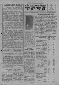 2. КОЛЛЕКТИВНЫЙ ТРУД 25 января 1957 года, № 11 Выдвижение кандидатов в депутаты областного Совета Чернокурьинскийизбирательный округ№70 Многолюдно было в сельском клубе села Морозовки вечером 22 января. Сюда задолго до назначенного времени стали собираться колхозники, чтобы выполнить то доверие, которое оказано им— первыми по Чер- нокурьинскому избирательному округу № 70 выставить кандидата в депутаты Новосибирского областного Совета. Слово берет заместитель председателя колхоза П. Ско- пич и вносит предложение выдвинуть кандидатом в депутаты областного Совета заведующую свиноводческой фермой артели Анну Ивановну Шапоренко. — Тов. Шапоренко,— говорит он,—в 1929 году одной из первых вступила в наш колхоз и почти с первых дней образования артели работает на свиноферме. В 1936 году она в числе пяти других членов нашей артели была участником Всесоюзного совещания передовиков сельского хозяйства в Москве и за успехи в развитии свиноводства иа- граждена орденом Трудового Красного Знамени. С тех пор она бессменно заведует колхозной свинофермой. В 1939 году тов. Шапоренко награждена большой серебряной медалью Главвыставкома. Нынче от каждой свиноматки получено в среднем по И поросят. В отдельные годы, например в 1953 году, на одну свиноматку в среднем по всей свиноферме было получено по 18 поросят, а от некоторых свиноматок даже по 25. Умелая организация работы свиноводческой фермы, направлен-' ная на повышение товарности, позволяет колхозу из года в год выполнять поставки государству свинины. За 1956 год наш колхоз сдал свиного мя са выше плана на 10 процентов. — Анна Ивановна Шапоренко будет достойным нашим депутатом,— говорит директор Морозовской семилетней школы Ф. Деренок. — Она с честью оправдает наше доверие. На собрании выступили колхозники В. Поддужная, 0. Цыганенке и другие, и все они единогласно называли имя своей знатной колхозницы Анны Ивановны Шапоренко. * * * Вечером того же дня состоялось предвыборное собрание граждан, села Черной Курьи. Один за другим выступают колхозники сельхозартели «Новая семья», сельская интеллигенция, механизаторы— тт. Да- виденко, Жеребцова, Пономарев, Агеев и другие. Все они горячо поддерживают решение членов артели им. Куйбышева выдвивуть своим кандидатом в депутаты А. И. Шапоренко, заведующую свинофермой колхоза имени Куйбышева. Собрание граждан принимает решение поддержать кандидатуру Анны Ивановны Шапоренко и просить ее дать согласие баллотироваться по Чернокурьинскому избирательному округу № 70. Доверенным лицом избирается И0! Да- виденко. Было принято обращение ко всем избирателям этого округа поддержать выдвинутую на собрании граждан кандидатуру А. И. Шапо- ренко. Карасукский избирательныйокруг №68 На собрание по выдвижению кандидата в депутаты областного Совета депутатов трудящихся по Карасукскому избирательному округу собрались все рабочие, служащие и инженерно-технические работники молочно-консервного комбината. Ям выпала честь первыми осуществить это великое право. Слово попросил рабочий комбината т. Прокопенко. —Я вношу предложение, — говорит он,— выставить кандидатом в депутаты областного Совета по нашему избирательному округу Николая Ивановича Заского, председателя Карасукского райисполкома. Тов. Заского на днях за заслуги в освоении целинных и залежных земель в районе, з