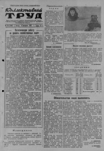 ПРОЛЕТАРИИ ВСЕХ СТРАН, СОЕДИНЯЙТЕСЬ! ^>Uj£JcrnuChSlU Орган Карасукского райкома Коммунистической партии Советского Союза и районного Совета депутатов трудящихся Новосибирской области №16(2204) | Среда, бГфевраля 1957 г. 'Цена 15 к. Поличтесикюу работу на уровень хозяйственых задач Избирательная кампания по выборам в местные Советы вступила в новый важный этап. В районе закончилось вы ’-чтение кандидатов. Своими посланцами в органы госу рсз венной власти избиратели назвали достойных представителей народа. На агитпунктах, десятидворках но месту жительства избирателей развернулась агитация за кандидатов блока коммунистов и беспартийных. Доверенные лица и агитаторы знакомят избирателей с биографиями, общественно-политической деятельностью посланцев в Советы. Массово-политическая работа среди избирателей ставит своей целью не только на высоком уровне и организованно провести выборы в местные Советы, но еще выше поднять трудовую активность населения, мобилизовать его усилия, на досрочное выполнение хозяйственных задач второго года шестой пятилетки. Многие коллективы предприятий, МТС, совхозов и колхозов взяли на себя обязательства ознаменовать день выборов новыми трудовыми успехами. Колхозники сельхозартели имени Буденного решили к 3 му марта провести снегозадержание на площади 2800 гектаров, вывезти на поля 2 тысячи тонн навоза, увеличить надои молока в среднем на фуражную корову на 150 литров по сравнению с этим же периодом прошлого года. Однако принятые обязательства выполняются плохо: на сегодняшний день на поля вывезено всего 350 тонн навоза, а удои выше прошлогодних за январь всего только на 35 литров. В агитпункте, на десятидворках, на фермах колхоза работает много агитаторов, но свои беседы они мало увязывают с хозяйственными задачами артели. Лекторы общественники и члены общества но распространению политических и научных знаний села Благодатного наметили прочитать в период предвыборной кампании на агитпункте и фермах колхоза 15 лекций, и из них только одна на сельскохозяйственную тему. Бесспорно, что лекций о небесных явлениях, о вреде религии, на медицинские темы нужно читать в селе больше, чем читается их сейчас, но непростительно забывать о лекциях и беседах по вопросам конкретной экономики колхоза, МТС, совхоза, предприятия. Мало читается лекций по сельскохозяйственной тематике в колхозах им. Жданова, «Красный путиловец», им. Дзержинского, не выступают с лекциями директора МТС, агрономы и зооветспециалисты. Более того, дирек тор Студсновской МТС т. Козлов не только не выступает с лекциями и беседами перед работниками животноводства, он не бывает даже на фермах колхозов. Низкий уровень агитационной работы в ряде партийных организаций, отрыв ее от конкретных хозяйственных задач отрицательно сказывается на объеме получаемой сельскохозяйственной продукции. В социалистическом соревновании районов области мы занимаем последнее место ио надою молока. Все это требует от партийных и комсомольских организаций, от наших агитаторов значительного улучшения массово политической работы среди трудящихся района, особенно среди работников животноводческих ферм, поднятия политической работы на уровень хозяйственных задач. Сейчас, когда значительно увеличился состав агитаторов, лекторов, главная задача секретарей партийны