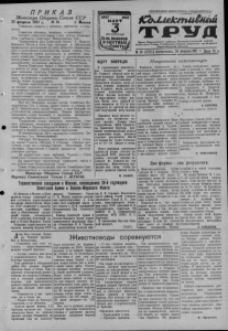 24 февраля 1057 года, № 24 КОЛЛЕКТИВНЫЙ ТРУД 3. Колхозники не доверили Пономареву руноводить нолхозом Недавно в колхозе «Путь к коммунизму» состоялось отчетно выборное колхозное собрание. На нем были обсуждевы итоги хозяйственно-финансовой деятельности правления колхоза за 1956 год. В докладе председателя правления т. Пономарева, и особенно в выступлениях колхозников, отмечалось, что наряду с некоторыми положительными результатами ц. работе правления колхоза имелссь очень много серьёзных недостатков и упущений. Правление очень слабо вело борьбу за повышение урожай ности сельскохозяйственных культур.План агромероприятий по существу был сорван: из плана 3000 га снег был задержан только на 500 га, а что касается внесения в почву местных и минеральных удобрений, то здесь это совершенно не делали. Поэтому, несмотря h i столь ^благоприятные погодные условия, колхоз не собрал планируемой урожайности ни по одному виду сельскохозяйственных культур и не выполнил государственный плгн заготовок и закупок хл^.ба. Плохо велась борьба за развитие общественного животноводства и повышение его продуктивности. План поголовья выполнен только по крупному рогатому скоту, да и то по коровам не выполнен. Продолжает оставаться низкой продуктивность скота и птицы. Надой молока на фуражную корову составил 1567 литров вместо плана 1700, меньше, чем в 1955 г ., настриг шерсти вместо 3 к г по плану получен 2,7 кг , яиц получено от курицы -несушки вместо 80 штук только по 39. Колхоз не выполнил план закладки силоса, а вторая комплексная бригада т. Белкина не заложила ни одного центнера, тогда как на поле ушло под снег 150 га прекрасной кукурузы. Не справился колхоз и с планом строительства общественных помещений. Вследствие слабой организаторской работы правления и неудовлетворительного использования имевшихся возможностей сельхозартель «Путь к коммунизму» получила самый низкий доход в зоне Студе- новской МТС. Годовой денежный доход составил 901 тыс. рублей. К выдаче на каждый трудодень начислено по 2,3 кг хлеба и по 3 руб. 40 коп. Имеется большая кредиторская задолженность. По состоянию на 1 января 1957 года колхоз должен разным организациям и предприятиям около 70 тыс. руб., государству по ссудам— около 90 тыс. руб., колхозникам и механизаторам за прошлые годы — более 30 тыс. руб. До сих пор не произведен полный расчет по трудодням за 1956 год. Таким образом колхоз оказался в очень трудном финансовом положении. При обсуждении деятельности колхоза за 1956 год колхозники подвергли резкой критике членов правления и особенно председателя т. Пономарева. Колхозница А. Моргунова в своем выступлении отметила, что правление, в частности т. Пономарев, совершенно не интересовалось, какая отрасль хозяйства является выгодной для колхоза и какая и почему убыточной. Так, в колхозе имеется пасека, которая не дала ни одного рубля дохода, зато расходы на ее содержание в 1956 году составили около 3 тыс. руб. Если бы к пасеке относились по-хозяйски, она бы давала немалую прибыль. Д. Дегтярев указал, что в результате бесхозяйственности и безответственности руководителей колхозный фруктовый сад, который хорошо прижился, рос и в ближайшее время мог бы уже плодоносить и приносить колхозу доходы, остался без внимания, зарос бурьяном и стравлен скотом. Т. Таран критиковал правление и бригадиров за несерьезное от