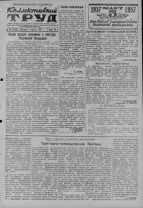 1 марта 1957 года, № 26 КОЛЛЕКТИВНЫЙ ТРУД 8 Ш к ш а в т е д а к д а г е Интересный вечер 23 февраля в клуб колхоза имени Молотова собрались молодежь и пожилые колхозники села послушать доклад и посмотреть концерт. Вначале все с большим вниманием прослушали доклад о Дне Советской Армии, который прочитал учитель Анисимовской семилет- ней школы т. Гуляев. После доклада силами участников самодеятельности был дан концерт. Хорошо поставил пьесу Евлахова «Сердце сол* дата» драматический коллектив клуба. Мужской хор исполнил песни «Шла с ученья третья рота» и «Жди солдата». Пабот Александра хорошо прочитала стихотворение «Уезжала в село коммуниста семья», песню «Солдатский вальс» исполнил под собственный аккомпанемент на гитаре шофер колхоза В. Трофименко. В. ГРИНЧЕНКО. В железнодорожной столовой За последнее время в нашей стране много сделано по борьбе с пьянкой и хулиганством. Запрещена торговля спиртными напитками на разлив в киосках и магазинах, закрыто много пивнушек вообще, столовые не обслуживают пьяных. Новый Указ обрезал крылья мелкому хулиганству. Но работники железнодорож ной столовой № 2 решили, что все эти законы не для них. В столовой процветает пьянка, посетители курят и даже песни запевают. Заведующая столовой т. Бабич ограничивается одними увещаниями. Не оказывает ей помощи железнодорожная милиция. Дебоширы привязываются к официанткам, плюют на пол, выражаются нецензурными словами. И все это остается безнаказанно. Когда мы спросили буфетчицу А. Глущенко, почему она отпускает вино и без того едва стоящему на ногах клиенту, она заявила: «Мне все "равно кому продавать, абы деньги платили». Столовая имеет хороший зал, все необходимое оборудование, готовится порядочный ассортимент блюд, однако клиенты ее избегают. В результате план товарооборота не выполняется. Н. ФИЛИППОВ. По следам наших выступлений „ПО СВОЕЙ МЕРКЕ" Под таким заголовком в нашей газете за б февраля была опубликована корреспонденция т. Козловой, в которой говорилось о факте обмера покупателей заведующей Студеновским сельмагом т. Колупайло. Председатель райпотребсоюза т. Зеленков нам сообщил, что факты подтвердились. Правлением сельпо т. Колупайло объявлен выговор, а собрание пайщиков не утвердило ее в должности заведующей сельмагом. По следам неопубликованных писем В редакцию нашей газеты по ступило письмо от пайщика пос. Демидовки, в котором сообщалось, что продавец Савищенко продавал кирзовые сапоги по завышенной цене, а также продал шубу не пайщику данного поселка. Факты при проверке подтвердились. Правление Студеновского сельпо продавцу Савищенко объявило выговор. вании памяти и других наших героев-земляков. Несколько слов и о сегодняшнем Карасуке. Неузнавае мым стал он особенно за последние пять лет. За это время застроено около 20 новых улиц, на северной окраине города вырос красавец молочно консервный комбинат, на южной буквально на глазах возник новый рабочий поселок строителей железнодорожной линии Карасук — Камень - на * Оби. Здесь же строится мощный третий по счету элеватор. А сооружение его вызвано воз- росшим поступлением хлеба в государственные зернохранилища. В прошлом году, например, отгружено в Карасукскпй цункт «Заготзерно» хлеба в шесть раз больше, чем в лучшем довоенном году. С двух других сторон черту города замыкают промышленн