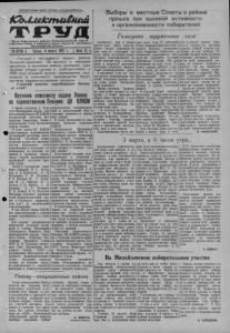 2. КОЛЛЕКТИВНЫЙ ТРУД 6 марта 1957 года. К» 28 Об (irrmx.rbffpcB в КшсШршй областной Совет депутатов трудящихся по Карасукскому рйаоун В Карасукскую окруж ную избирательную комиссию № 68 к 8 часам утра 4 марта 1957 года поступили от всех участковых избирательных комиссий окончательные данные о результатах выборов в Новосибирский областной Совет депутатов трудящихся. Во всех 9 избирательных участках за кандидата блока коммунистов и беспартийных Николая Ивановича Заского голосовало 98,98 процента избирателей от общего числа участвовавших в голосовании. Таким образом, депутатом Новосибирского областного Совета депутатов трудящ их ся по Карасукскому изби рательному о кр у гу № 68 избран Николай Иванович ЗАСКОГО . * * * В Троицкую окруж ную избирательную комиссию № 6 9 к 11 часам 4 марта 1957 года поступили от всех участковых избирательных комиссий сведения окон нательных результатов о выборах в Новосибирский областной Совет депутатов трудящихся. Во всех 16 избирательных участках за кандидата народного блока коммунистов и беспартийных Василия Дмитриевича Головина голосовало 99,16 процента избирателей от общего числа участвовавших в голосовании. Таким образом, депутатом Новосибирского областного Совета депутатов трудящихся по Троицкому избирательному окр у гу № 69 избран Василий Дмитриевич ГОЛОВИН . * * п В Чернокурьинскую о к р уж ную избирательную комиссию № 70 к 12 часам дня 4 марта 1957 года по ступили от всех участковых избирательных комиссий окончательные данные о результатах выборов в Новосибирский областной Совет депутатов трудящихся. Во всех 11 избирательных участках за кандидата народного блока коммунистов и беспартийных Анну Ивановну Шапаренко голосовало 99,56 процента избирателей от общего числа участвовавших в голосовании. Таким образом, депутатом Новосибирского областного Совета депутатов трудящихся по Чернокурьинскому избирательному о к р у гу № 70 избрана Анна Ивановна Ш АПАРЕНКО . Итоги выборов в Карасукский городской Совет К 10 часам утра 4 марта 1957 года городская избирательная комиссия получила окончательные данные о результатах голосования по всем 53 избирательным округам по выборам в Карасукский городской Совет депутатов трудящихся. В выборах приняли участие все сто процентов зарегистрированных избирателей. За выдвинутых кандидатов в депутаты во всех избирательных округах голосовало 99,1 процента. Все выдвинутые кандидатами в депутаты городского Совета избраны депутатами. Окружные избирательные комиссии вручили им депутатские удостоверения. Все депутаты городского Совета являются депутатами народного блока коммунистов и беспартийных. С О О Б Щ Е Н И Е районной избирательной комиссии об итогах выборов в Карасукский районный Совет депутатов трудящихся партийных голосовало 99 ,5 ' процента избирателей, участвовавших в выборах. Рассмотрев материалы по каждому избирательному окру гу , районная избира3 марта 1957 года состоя лись выборы депутатов районного Совета. В выборах приняло участие 99,99 процента зарегистрированных избирателей. За кандидатов блока коммунистов и бес- тельная комиссия на основании статьи 121 Положе ния о выборах в местные Советы зарегистрировала избранных делегатов по всем 42 избирательным окСтгисок депутатов, избранных в Карасукский районный Совет депутатов трудящихся ЗАСКОГО Николай Иванович— -Октяб