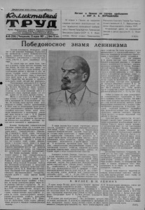 22 апреля 1957_года, № 48 КОЛЛЕКТИВНЫЙ ТРУД 3 , В. И. Ленин беседует|с крестьянами.'в Горках. ---------★ Крестьяне Ставрополья у Ленина Шел 1920 год. Красная Армия добивала интервентов и белогвардейцев. Но оставались опасные враги —разруха, голод. У крестьян, недовольных продразверсткой, возникало много серьезных жизненных вопросов. И решили хлеборобы Ставрополья послать за советом ходоков к Владимиру Ильичу. Владимир Ильич принял хлеборобов сердечно. Он сам открыл им дверь, поздоровался с каждым за руку, подавал ходокам стулья, приглашая к столу, чем немало смутил делегатов. Ленин—и вдруг подает стул! Новот завязалась беседа, и неловкость сразу исчезла. Ильич внимательно слушал крестьян. Потом сам подробно объяснил, почему сейчас трудно жить, кто в этом виноват и что нужно делать, чтобы выйти из тяжелого положения. Говоря оснабжении крестьян сельскохозяйственными орудиями и предметами домашнего обихода, Ленин заверил делегатов, что все это будет, лишь бы крестьянство активно помогало преодолевать разруху. Они встречали Ленина Трудящиеся Ленинграда широко отметили 40-летие со дня возвращения В. И. Ленина из эмиграции в Россию. Более 2 тысяч молодых ленинградцев собрались в Большом зале Дворца культуры имени А. М. Горького на вечер встречи со старыми большевиками. С огромным интересом слушали собравшиеся рассказы старых большевиков: М. Ф. Свешникова — члена Выборгского райкома большевиков 1917г., А. И. Кругловой — депутата Петроградского Совета в 1917 году, А. А. Булышкина— пропагандиста Петербургского комитета партии, В. П. Виноградова—депутата Петроградского Совета в 1917 году, члена Выборгского райкома Iбольшевиков в период подполья и Октябрьской революции. С 'большим волнением они вспоминали о том, с какой радостью и восторгом встречали многие тысячи петроградских рабочих любимого вождя и учителя В. И. Ленина. От именимолодых ленинградцев на вечере выступили студентка университета Маргарита Кривошеина и слесарь Кировского завода Владимир Зёленов. В своих выступлениях они говорили о том, что молодые ленинградцы будут всегда и во всем следовать славным революционным и трудовым традициям своих отцов. Верное заветам Ленина молодое поколение отдаст все силы строительству коммунизма. как оно пользуется еще поддержкой Советов, Ленин выдвинул лозунг: никакой поддержки Временному правительству! И призвал большевиков разъяснять народным массам необходимость перехода всей власти в стране в руки Советов, вести борьбу с меньшевиками и прочими соглашателями и завоевать большинство в Советах. Ленин сделал в Апрельских тезисах гениальное научное открытие: наилучшей и единственно возможной формой диктатуры пролетариата у нас может быть лишь республика Советов. И хотя в то время в Советах заседали меньшевики, Ленин смело провозгласил: —Вся-власть Советам! Ленин был уверен, что меньшевики в Советах недолго будут пользоваться доверием народа. Трудящиеся поймут, что это за люди и наверняка попросят их освободить депутатские места. Большевики же, получив большинство в Советах, сумеют начать социалистические преобразования страны. Таким образом, Ленин в то время считал, что социалистическую революцию в России можно осуществить мирным путем. И это было правильно. Сил для этого было достаточно. А вот какие экономические мероприятия нужно было п