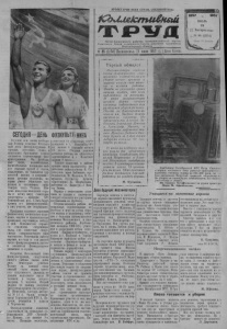 -...П.Р0ЛЕТАРИИ ВСЕХ СТРАН, СОЕДИНЯЙТЕСЬ! КЪиа&стившш. Орган Карасукского райкома- Коммунистической партии С оветского Союза и районного Совета депутатов трудящихся Новосибирской области № 8В (2274У Воскоесенье, 21 июля 1057 г. f Цзнз 15иоп. 1957 июль 21 П Воскресенье № 86 (2274) Цепа 15 копеек 195? СЕГОДНЯ-ДЕНЬ ФИЗКУЛЬТУРНИКА Сегодня вся наша необъят пая Родина отмечает Всесоюзный день физкультурника. В городах, поселках, селах, в колхозных бригадных станах состоятся соревнования физ культурников. На футбольные поля, волейбольные, баскетбольные площадки выйдут сильные душой и телом закаленные, не боящиеся трудностей юноши и девушки— наша лучшая молодежь, которая умеет образцово трудиться и отстаивать спортивную честь Родины. Широко известны молодежи страны и всему миру советские спортсмены — призёры XVI Олимпийских игр. Сних берут пример все физкультурники, 'У них учатся, им подражают. Придавая огромное значение физическому воспитаниюмолодежи, партия и правительство проявляют неустанную заботу о ней. Повсеместно строятся стадионы, спортивные залы, где советские спортсмены совершенствуют свое мастерство. Отвечая на заботу партии, из года в год растет число физкультурников, растет и множится физкультурное движение в стране. Встречая Всесоюзный день физкультурника, спортсмены нашего района также добились некоторых успехов. Только за зимний' спортивный сезон нормы третьего спортивного разряда по лыжам выполнило около 30 человек, а нормы второго разряда 6 человек. Второй разряд по лыжам получили1 работница пункта«Яаготзсрно»‘ В. Шевелева, слесарь автороты № 11 А. Орлов, механизатор Хорошинской МТСА. Петухов, учащийся 9 класса А. Черемиспв. Физкультурники - лыжники участвовали на зональных со- j ревнованиях ДСО «Урожай» в г. Купино, где заняли 3-е [ место. Команда молодежи, участвуя га областных сор?1!- новациях в г. Новосибирске по лыжам и стрельбе заняла 10 место. Сборная лыжная команда района на областных соревнованиях в г. Искитиме заняла 8 место Хорошо известны в районе лучшие наши шахматисты ра работник райисполкома В. Со- рокоумов, врач Бабинцев, преподаватели М. Малахов, В. Се- мизаров, бухгалтер пункта «Заготзерно» В. Щербатенко, работник ст. Карасук—I Виктор Заика. Наряду с некоторыми успехами по лыжам и шахматам следует отметить все растущие достижения по футболу. Сборная команда района на зональных соревнованиях по футболу в игре на кубок области вышла в полуфинал, победив с большим преимуществом команды Веселовского и Анд- шевского районов. Футбольная команда СМП-233, участвуя в розыгрыше кубка отделения «Барнаулстройпути», в играх в г. Кулунде и городе Барнауле выиграла кубок отделения «Барнаулстройпути» и вышла в финал в игре на первенство дорпрофсожа. Однако наряду с некоторым улучшением физкультурной работы в районе следует отметить и существенные недостатки. Участвуя в областном фестивале только по спортивным играм, физкультурники района совсем не приняли участия в соревнованиях по легкой атлетике, стрельбе, велоспорту, хотя возможность в посылке комдан была. , До сих нор еще районfПервый обмолот Механизаторы совхоза имена Дзержинского своевременно подготовились к уборке нового урожая и заранее вывели свои машины к местам работы. Чтобы не упустить сроки напала жатвы, они вели наблюдение за посевами. 16 июля механизаторы шестой