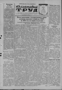 Инициатива и опыт Косят травы круглосуточно Низок процент выполнения плана заготовки грубых кормов во второй комплексной бригаде колхоза .Путь Ленина". Сдерживаются здесь темпы косовици трав потому,что работает только один сенокосильный агрегат. И вот когда механизаторы тракторной бригады т. Хмелевского переехали на новый участок—заливные луга, тракторист комсомолец Андрей Май предложил использовать агрегат на косовице не только днем, но и ночью. Машинисты сенокосилок Иван Бершауэр, Яков Кнаус и и Яков Майер поддержали предложение тракториста. 18 июля механизаторы оборудовали агрегат для ночной работы. Для этого дополнительно сзади к трактору прикрепили 2 фары с таким расчетом, чтобы хорошо освещался сцеп сенокосилок. Четвертую сенокосилку на ночь отцепляют, косят тремя. Массивы для ночной работы подбирают заранее. Роса на этих лугах не мешает косовице. Первые шаги в этом направлении дали положительный результат. При норме 28 гектаров на 4 полотна комсомольско-молодежный агрегат скосил в первую смену 38 гектаров, а в следующую—41 гектар. А всего этот агрегат скосил травы более чем с 500 гектаров. Большой помехой бесперебойной работе агрегата была частая смена затупленных кос. И здесь пытливые механизаторы нашли выход. С помощью помощника бригадира А. Гидиона члены комсомольско-молодежного агрегата переделали косы—заменили обычные сегменты на серпообраз ные, использовав для этой цели старые косы с самоходных комбайнов. Теперь отпала необходимость в точке кос. ПРОЛЕТАРИИ ВСЕХ СТРАН, СОЕДИНЯЙТЕСЬ! Орган Карасукского райкома Коммунистической партии Советского Союза и районного Совета депутатов трудящихся Новосибирской области 1957 * 1957 ИЮЛЬ 24 Среда № 87 (2275) Цена 15 копеек Итоги выполнения государственного плана развития народного хозяйства СССР на 1957 год за первое полугодие Сообщение Центрального статистического управления при Совете Министров СССР Центральное статистическое управление при Совете Министров СССР опубликовало сообщение об итогах выполнения государственного плана развития изводство новых типов машин и оборудования более 100 наименований, Претворяя в жизнь мероприятия партии и правительства 1957 год за первое полугодие. В соответствии с директивами XX съезда КПСС в первом полугодии 1957 года значитель- но возрос объем промышленно-' го производства. План первого полугодия по выпуску валовой продукции промышленности в целом по СССР выполнен на 104 процента. Производство промышленной продукции по сравнению с 1 полугодием прошлого года возросло на 10 процентов, в том числе в 1 квартале—на 9 процентов, во 2 квартале—на 11 процентов. I Производство средств производства (группа «А») выросло на 11 процентов, а производствопредметов потребления (группа «Б»)—на 8 процентов. По всем союзнымреспубликамплан первого полугодия перевыполнен. В соответствии с решениями февральского Пленума ЦККПСС и VII Сессии Верховного Совета СССРо дальнейшем совершенствовании организации управления промышленностью и строительством в экономических и административных районах создано 105 Советов народного хозяйства. Предприятия, переданные в ведение совнархозов, производят 3 четверти общего объема промышленной продукции СССР в том числе 100 процентов всего производства чугуна, минеральных удобрений, метал- ,.„л -т, - „ . , лургического обор
