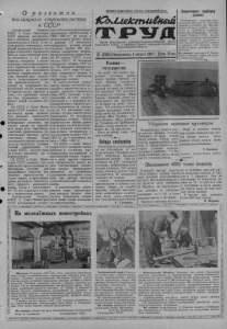 2. КОЛЛЕКТИВНЫЙ ТРУД 4 августа 1957 года, № 92 В райкоме КПСС Осрыве уборки масличных культур в колхозахзоны Хорошинской МТС Бюро РЕ КПСС 1 августа заслушало и обсудило доклады директора Хорошинской МТС т. Петухова и секретаря партбюро т. Илюшина, председателей колхозов им. М. Горького, им. Калинина, им. Андреева и им. Сталина тт. Горбунова, Лонина, Понкратьева и Максюту о ходе уборки рыжика и сдаче его государству. Было отмечено, что в колхозах зоны Хорошинской МТС сорвано организованное начало уборки рыжика, его обмолот и сдача государству. В горячие дни уборки, некоторые бригадиры тракторных бригад, как например т. Яковлев пьянствует, часть техники до сих пор находится на усадьбе МТС, некоторые лафетные жатки не ремонтировались. Низка сменная выработка лафетных жаток. За 31 июля каждой лафетной жаткой скошено всего около 5 гектаров. - , В бригадах ничего не делает-г ках. ся для организации двухсменной работы хедеров. Жатки не оборудованы для ночной работы электроосвещением. Комбайны не готовы к подборке. Плохо проводятся и другие работы. Здесь почти прекратили заготовку грубых кормов, не косят на сено овес, медленно закладывают силос. Навести порядок в мастерской За неорганизованное начало уборки урожая бюро РК КПСС объявило т. Петухову и т. Илюшину выговор с занесением в учетную карточку и предупредило, что если они не исправят положения с уборкой, то будут сняты со служебных постов и привлечены к более строгой партийной ответственности. Предупреждены о личной партийной ответственности за неорганизованное начало уборки председатели колхозов тт. Лопин, Максюта, Панкратьев и Горбунов. Им предложено со второго августа начать уборку зерновых (ячменя). Секретарям парторганизаций этих колхозов тт. Киба, Омельченко, Капич и Коваленко указано на несеръезное отношение к проведению массово-политической работы среди колхозников и механизаторов на уборке урожая и сенозаготовОбращено внимание инструкторской группы РК КПСС (секретарь РК КПСС по зоне МТС т. Кабицкий) на примиренческое отношение к неправильным действиям директора МТС т. Петухова, допустившего затяжку с началом уборки урожая. Семинар секретарей комсомольских организаций 3 августа в партбиблиотеке состоялся семинар секретарей первичных комсомольских организаций колхозов, совхозов и МТС. Для участников семинара были прочитаны лекции: «О международном положении» и «О роли стенной печати на уборu__ т » " 1 - . . " s u — ujlj ке урожая». Обсуждены также вопросы об инициативе и самодеятельности в комсомольских организациях и об улучшении идейно-воспитательной работы комсомольских организаций среди молодежи. , - В. Костенко. — Запрещаю появляться на усадьбе МТС бригадирам тракторных бригад в период полевых работ,— так гласит распоряжение директора Хорошинской МТС т. Петухова, Нельзя поставить под серьез-’ ное сомнение такое указание. Ведь в самом’ деле, что же делать бригадирам на усадьбе машинно-тракторной станции? Все механизаторы находятся в поле, ведут заготовку кормов, уборку нового упожая. Время не ждет, каждый час дорог. К тому же в последнее время идут частые дожди, что нарушает нормальную работу. Промедление в работе может нанести серьезный убыток хозяйству. И бригадиру, безусловно, необходимо в этот напряженный период находиться в поле, среди механизаторов, там, где решает