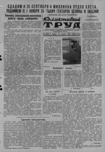 СДАДИМ К25 СЕНТЯБРИ 4 МИЛЛИОНА ПУДОВ Х ША , ПОДНИМЕМ К 1 НОЯБРЯ35 ТЫСЯЧ ГЕКТАРОВ ЦЕЛИНЫ И ЗАЛЕЖИ! » » Усилить агитационно-массовую работу среди хлеборобов Пород тружениками сельского хозяйства поставлена ответственная и почётная задача. К 25 августа необходимо закончить косовицу хлебов, не позднее 25 сентября засыпать в закрома Родины 4 миллиона пудов добротного сибирского зерна, поднять к 1 юября 35 тысяч гектаров целины и залежи. Срок небольшой, а работ нужно выполнить много. На 20 августа план косовицы зерновых выполнен всего лишь на 27,1 процента. В выполнении этих важных задач большую роль призваны сыграть партийные организации колхозов, совхозов иМТС. Их долг—мобилизовать и возглавить политический и трудовойподъеммасс на успешное решение предстоящих задач. Для этого у нас имеются все условия. На период хлебоуборки и хлебозаготовок подобрано и закреплено в тракторных и полеводческих бригадах и на токах около 400 агитаторов, редакторов стенных газет и боевых листков. Для обслуживания механизаторов создано 14 агитхудожествен- ных бригад. Есть возможность нс менее двух раз в месяц непосредственно в бригадах демонстрировать кинофильмы. Ряд партийных организаций с первых же дней жатвы развернули массово-политическую работу в поле, на ш и х там, где решается битва за хлеб. Так, например, серьёзное внимание уделяется политической работе в тракторной бригаде Карасукской МТС, которую возглавляет коммунист Э. Лель. Здесь регулярно выпускаются «боевые листки». В них рассказывается об опыте работы передовиков, вскрываются недостатки и нерадивое отношение со стороны отдельных работников, занятых на уборке урожая. В бригаде ре- ' гулярно заполняется доска показателе." имеется конкрет- \ пая наглядная агитация, призывающая к успешному проведению уборочных работ. На полевом стане демонстрируются кинокартины, сюда доставляются свежие газеты, журналы. Бригадир, коммунист т. Лель сам уделяет большое внимание воспитательной работе в кол .ктиве. Это, безусловно, сказывается и на результатах работы. Механизаторы круглосуточно ведут косовицу хлебов, перевыполняют сменные задания. бригада т. Леля является одной из лучших в МТС. Примеры положительной работы можно найти в парторганизации колхоза имени Тельмана и некоторых других. Однако можно встретить еще много фактов, когда партийнополитическая работа пущена на самотек. Некоторые руководители кропотливую воспитательную работу подменяют распоряжениями и приказами. Плохо организует политмассовую работу парторганизация Чернокурьинской МТС (секретарь т. Корчун). Взять, к примеру, тракторную бригаду т. Данилова, работающую в колхозе имени Амангельды. Здесь никакой речи не ведется и не велось о соцсоревновании, отсутствует наглядная агитация, не распространяется опыт передовых лафетчиков района. В бригаде нет доски показателей. Механизаторы, занятые на уборке урожая, получают газеты раз в неделю, а ' журналов вообще не получают. Одним из следствий запущенности массово-политической работы является то, что бригада по сути дела срывает ход уборочных работ, ведет косовицу зерновых недопустимо медленно. Запущена массово-политическая работа в совхозе им. Дзержинского (секретарь т. Хватков). Здесь даже не проведен семинар с агитаторами, почти на всех фермах не выпускаются «боевые листки», не запол
