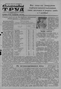 ««глея КОЛЛЕКТИВНЫЙ ТРУД 3 27 сентября 1957 года, д явш яю г * "м т я в ятт гкзспзю :- № 116 На колхозных полях школьники Уже третий год шефствуют над молодняком колхоза „Путь Ленина" учащиеся Октябрьской семилетней школы. Самым активным шефом в колхозе считают Васю Кириллова. Шефствовать над телятами он начал еще тогда, когда учился в пятом классе и был пионером .; Теперь Вася учится в седьмом классе и уже вступил в комсомол. Выросли и те телята, за которыми он вместе со своими одноклассниками помогал ухаживать колхозным телятницам. И а снимке: Вася Кириллов на ферме. Весной учащиеся Хорошин- ской средней школы взяли обязательство посадить и вырастить в колхозе им. Андреева ►картофель на площади 10 гектаров и кукурузу на 40 гектарах. С посадкой" картофеля и посевом кукурузы школьники управились в срок, а летом организовали тщательный уход за посевами. Хороший урожай вырос на подшефных участках: картофель дает более 200 центнеров с каждого гектара, а с участка кукурузы заложено па силос более чем по 300 центнеров зеленой массы с каждого гектара. Сейчас у школьников новая забота—надо помочь колхозам в завершении уборки урожая зерновых, в сборе початков кукурузы на семена, в копке картофеля как на подшефном участке, а также и на остальной площади. Хорошо трудятся в колхозе им. Калинина учащиеся Дводненко, Никашов, Карнадутова, Рогозная. Они за истекшие две недели заработали по 18-20 трудодней каждый. 11 школьников 8-9 классов ежедневно выходят на сбор кукурузных початков на семена. Они уже собрали более одной тонны початков. На уборку картофеля выходит 30-40 школьников старших классов. Своим старшим товарищам приходят помочь и учащиеся 4—6 классов. 25 сентября школьники сделали массовый выход на уборку этой культуры на полях колхоза им. Андреева. Хорошо потрудились в этот день четверо классники. Они за неполный день выкопали картофель на площади более 0,30 гектара. Входе уборки вХорошинскую МТС поступили новые подборщики, которые потребовалось сразу же включить в уборку. Все механизаторы заняты на работе в поле. Как быть? II здесь на помощь пришли школьники. На сборку подборщиков вышли учащиеся 9-го класса Борис Петухов, Анатолий Сиволап, Николай Рыбал- ченко и другие. Три подборщика, собранных их руками уже направлены на работу в колхозы. Работа на колхозных полях закаляет школьников и при носит большую помощь колхозам. А. Денисова. 40 лет тому назад... Первый съезд Советов Средней Сибири 6—10 (19—23) сентября 1917 года в Красноярске состоялся первый съезд Советов рабочих и солдатских депутатов Средней Сибири. Он работал в условиях, когда после разгрома корниловщины в стране нарастал новый революционный подъем. На съезде были представлены Советы всех основных центров Средней Сибири: Красноярский, Томский, Барнаульский, Новониколаевский(ны- не Новосибирск),Кольчугинский (нынеЛенинс-к-Кузнецкий,Кемеровской области), Черемховский (Иркутской области), Ачинский, Боготольский, Енисейский, Иланский, Канский, Минусинский. Присутствовали также представители Владивостокского Совета и Иркутского окружног о бюро Советов Вое точной Сибири. Из 33 делегатов, участвовавших в работе съезда, 21 делегат были большевиками. Это свидетельствовало о том, что начавшаяся во всей стране полоса большевизации Советов захватила и Советы Сибири, что ее большевистские организации уп