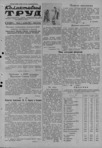 2 КОЛЛЕКТИВНЫЙ ТРУД 2 октября 1957 гола, №118 Укреплять ведущую роль коммунистов (С отчетно-выборного собрания партийной организации нолхоза им. Джамбула) Большие изменения произошли в колхозе им. Джамбула за последнее время: электрифицирована центральная усадьба артели, силами самих колхозников построена семилетняя школа, значительно окрепло хозяйство. Взять, например, животноводство: план поголовья скота перевыполнен, надои на одну фуражную корову за истекшие 9 месяцев увеличились по сравнению с прошлым годом на 253 литра. В весенний период в самые сжатые сроки был проведен сев—за 12 рабочих дней, косовицу и подборку зерновых колхоз завершил первым в районе. Во всем этом немалая заслуга колхозной парторганизации. За истекший период после предыдущего отчетно-выборного собрания коммунисты провели 10 собраний, на которых обсудили многие вопросы, направленные на укрепление внутрипартийной работы и артельного хозяйства. Об этом подробно остановился в своем докладе на отчетно-выборном партийном собрании секретарь этой организации т. Жанга- зинов. Отметил он и недостатки, а их еще немало: в колхозе выращена плохая кукуруза, и силоса заложено всего по 3 тонны на корову—меньше, чем в любом другом колхозе района, выращен и собран йизкий урожай зерновых— в среднем по 6 центнеров с каждого гектара, исключительно медленно идет распашка целинных земель, колхоз плохо рассчитывается с государством по поставкам мяса, неблагополучно обстоит дело с подготовкой животноводческих помещений к зиме. Серьёзные недостатки имеются в организации внутрипартийной и массово-политической работы среди колхозников. Партийная организация не ру2 «Все, что отвоевано • было у царского самодержавия, отвоевано исключительно борьбой масс, руководимых такими людьми, как Бабушкин»,—писал В. I . Ленин в некрологе «Иван Васильевич Бабушкин». Об этом выдающемся большевике, ученике В. И. Левина, и рассказывает книга М. Новоселова «Иван Васильевич Бабушкин». Главы «На полюсе холода», «С оружием в руках», «Смерть героя» рассказывают о революционной работе Бабушкина в Сибири в период первой русской революции. С горечью повествуется о героической смерти И. Бабушкина, расстрелянного на ст. Мысовая близ Иркутска карательной экспедицией. ководит комсомольской организацией, и она по сути дела бездействует. Политучеба в прошлом году проходила плохо, мало что сделано и для успешного проведения занятий в наступающем учебном году Секретарьпарторганизации тов’ Жангазинов не всегда имеет' планы работы, мало советуется с коммунистами, допускает нарушение. Устава КПСС. Так, член партии т. Досжанова >не платила 5 месяцев членские взносы и секретарь принял у нее взносы без обсуждения на партийном собрании. Все эти и многие другие недостатки партийной работы стали возможны потому, что здесь коммунисты плохо привлекались для выполнения поручений—секретарь не давал их, а если иногда и давал, то не контролировал выполнение. Комсомолец Ж. Тлегенов был утвержден редактором колхозной стенной гезеты. К своим обязанностям он относился плохо, но отчет о его работе не был заслушан ни на партийном, ни на комсомольском собраниях. Партийная организация не выступила настоящим организатором социалистического соревнования среди колхозников, не боролась за укрепление трудовой дисциплины 