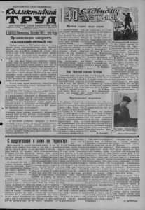 ПРОЛЕТАРИИ ВСЕХ СТРАН, СОЕДИНЯЙТЕСЬ! 1CbUj£jbmu£kstu T P V f l Орган Карасукского райкома Коммунистической партии Советского Союза и районного Совета депутатов трудящихся Новосибирской области №123(2311) IВоскресенье, 13октября1957 г-1 Цена 15 коп. Организованно завершить сельскохозяйственный год Колхозы, совхозы и МТС района вступили в завершающий период сельскохозяйственных работ. Уборочные работы уже в основном завершены. Необходимо еще раз проверить тока, по-хозяйски подобрать все отходы, довести их до дела. Особое внимание следует уделить засыпке семенных фондов. Чем быстрее будут закончены эти работы, тем успешнее можно будет решить другие неотложные хозяйственные задачи. А их очень много. Прежде всего необходимо усиленно готовить земли под урожай будущего года. Перед районом поставлена ответственная задача поднять в этом году 40 тысяч гектаров целинных и залежных земель. Выполнить седело чести для тружеников колхозных и совхозных полей. Однако наступают уже холода, а в районе поднято только около 7 тысяч гектаров. Полным ходом надо вести скирдование соломы, подвозить керма к фермам, устранять недоделки в подготовке теплой зимовки общественному скоту. Все эти вопросы не терпят отлагательства, и потому решать их вадо комплексно. По всей стране широко развернулось социалистическое соревнование за достойную встречу приближающейся 40 й годовщины Великого Октября. Принимая обязательства в честь 40-й годовщины Октябрьской революции, коллектив Барышевской МТС обратился ко всем механизаторам области с призывом включиться в предпраздничное соревнование за образцовую подготовку техники к полевым работам 1958 года. Работники Ка- расукской МТС также взяли на себя обязательство— к 7 ноября отремонтировать 30 комбайнов. Однако прошло уже порядочно времени, а соревнование за выполнение своего решения развертывается слабо. В других же МТС обращение барышевцев даже не обсуждалось. Заблаговременно отремонтировать тракторы и сельхозмашины— значит получить возможность механизаторам заняться зимой другими работами— строительством, механизацией ферм, подвозкой и приготовлением кормов, технической учебой. До наступления устойчивых заморозков, а затем и снегопадов осталось немного времени. Необходимо повысить трудовое напряжение и успеть вовремя выполнить весь комплекс работ по завершению сельскохозяйственного года. От этого будет зависеть успех борьбы за увеличение производства продуктов полеводства и животноводства в 1958 сельскохозяйственном году. успеМолоко сдают сверх плана С производственным хом встречает приближающуюся 40-ю годовщину Октябрьской революции коллектив Карасукского маслозавода. План 9 месяцев перевыполнен, сверх плана завод заготовил 4764 центнера молока. Колхозы зоны Карасукской МТС полностью выполнили годовой план сдачи молока государству. Колхоз «Маяк Ильича» на одну фуражную корову сдал 1667 литров молока, сдав сверх задания 590 кам годовой план на 1 октября выполнен на 143 процента, заготовлено молока сверх плана 1840 процентов (430 литров на каждое хозяйство). Зав. сепараторным отделением поселка Александровкп (Михайловский сельсовет) Ф. Е. Обухова заготовила на одно хозяйство по 570 литров молока, Е. Шаравина в с. Чу- ман— 973 литра, М. Голубец в с. Покровка (Благодатский сельсовет)— 998 литров, Коллектив маслозавода ре ц