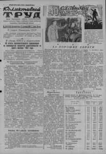 L ПРОЛЕТАРИИ ВСЕХ СТРАН, СОЕДИНЯЙТЕСЬ! 1^Uu£Jcnuiik6ui Орган Карасукского райкома Коммунистической партии Советского Союза и районного Совета депутатов трудящихся Новосибирской области N2129(2316) Воскресенье, 27 октября 1957г'1 Цена 15коп. В Совете Министров СССР Идя навстречу пожеланиям трудящихся, Совет Министров СССР постановил перенести в 1957 году день отдыха с воскресенья 10 ноября на субботу 9 ноября. В обкоме КПСС и облисполкоме Об итогах социалистического соревнования по производству продуктов животноводства за девять месяцев ’1957 года Обком КПСС и облисполком рассмотрели материалы, представленные областным управлением сельского хозяйства, о соревновании колхозов, МТС и совхозов по производству продуктов животноводства. Первенство в социалистическом соревновании и переходящие красные знамена обкома КПСС и облисполкома присуждены: По Кулундинскому производственно территориальному управлению Карасукскому району (секретарь райкома КПСС т. Чипиль, председатель райисполкома т, Заского). В районе надоено молока на фуражную корову: в колхозах 1819, в совхозах 1919 килограммов. Валовое производство молока увеличено: в колхозах на 25,6, в совхозах на 25,8 процента. Заготовлено 83 центнера силоса на корову. Веселовской МТС (директор т. Радощекин, секретарь партбюро т. Волков). Колхозы, обслуживаемые МТС, надоили по 1893 килограмма на фуражную корову— на 318 килограммов больше, чем в прошлом году. Валовое производство молока увеличено на 26,5 процента. Заготовлено по 64 центнера силоса на корову. Запрудихинскому овцесовхозу (директор т. Маке- вич, секретарь партбюро т. Ильин). Совхоз произвел шерсти 307 килограммов на каждые 100 гектаров земельных угодий. От каждой овцы получено по 4,71 килограмма шерсти (в совхозе 21,6 тысячи голов овец). Надоено по 2668 килограммов молока на корову. Колхозу „Рассвет" Андреевского' района (председатель т. Ситников, секретарь парторганизации т. Мастеров). Колхоз увеличил производство молока на 54,5 процента. Надоил на каждую фуражную корову 2237 килограммов, удвоил производство мяса по сравнению с прошлым годом. Заготовлено силоса по 90 центнеров на корову. * * # Переходящие красные знамена обкома КПСС и облисполкома, присужденные по итогам соревнования на 1 июля 1957 года, оставлены Заобской и Еланской МТС, Бердскому совхозу, колхозу им. Хрущева Новосибирского района и подсобному хозяйству завода «Сиб- сельмаш». Переходящие красные знамена обкома КПСС и облисполкома- будут вручены Искитимскому, Барабинско- му, Карасукскому районам, Скалинской и Веселовской МТС, Барабинскому, Запрудихинскому и Вьюнскому совхозам, колхозам имени Покрышкина Венгеровского района, «Рассвет» Андреевского района и колхозу «Путь Сталина» Колыван- ского района. . Переходящие красные знамена отбираются у Новосибирского, Чановского и Веселовского районов, Ка- расукской МТС, совхозов «Первомайский» и им. Дзержинского, колхозов «Память Сталина» Венгеровского и имени Свердлова Веселовского районов. Открылась XVI-я районная партконференция Вчера, в 12 часов дня, в районном Доме культуры открылась XVI районная партийная конференция. С отчётным докладом о работе районного комитета КПСС выступил первый секретарь тов. Чипиль. О деятельности ревизионной комиссии конференции доложил председатель комиссии тов. Яценко. По отчетным докладам начались прения. Выступил