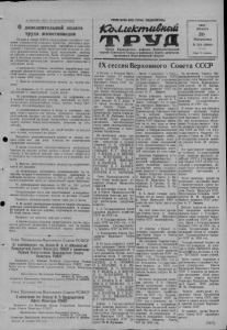 В ОБКОМЕ КПСС И ОБЛИСПОЛКОМЕ О дополнительной оплате труда животноводов На днях в обкоме КПССи облисполкоме состоялось совещание специалистов сельского хозяйства, работников научно-исследовательских учреждений, партийных и советских органов с участием группы председателей колхозов по вопросу дополнительной оплаты труда колхозников, занятых на работах в животноводстве. Были обсуждены применяемые в колхозах разных зон области поощрительные меры за увеличение производства продуктов животноводства и сохранение скота. 15 результате обмена мнениями выработаны следующие рекомендации колхозам на период зилне- стойтового содержания скота с 1 декабря 1957 года до 1 июня 1958 года: 1. Ввести дополнительную оплату за надои молока: а) дояркам—по 15 копеек за каждый литр молока, надоенный от закрепленной группы коров; б) скотникам, ухаживающим за коровами,—по 4 копейки за каждый литр молока, надоенный по гурту. Распределять дополнительную оплату поровну между скотниками, обслуживающими гурт; п) подвозчикам силоса и воды к скотным дворам, если в колхозе эти работы проводятся специально выделенными людьми,— по две копейки за каждый литр молока, надоенный на ферме. Распределять дополнительную оплату поровну между колхозниками, занятыми на этих работах; О заведующему МТФ—по одной копейке за каждый литр молока, надоенный на ферме. Выдавать дополнительную оплату за надои молока один или два раза в месяц по усмотрению правлений колхозов. В целях повышения заинтересованности колхозников, занятых на вывозке грубых кормов с нолей на фуражные склады, в быстрейшей вывозке сева и соломы выработать и утвердить им дополнительную оплату по усмотрению колхозов. 2. Ввести дополнительную оплату за сохранение скота от падежа: а) телятницам, скотникам, ухаживающим за телятами старше 6 месячного возраста, свинаркам и чабанам выдавать ежемесячно от 100 до 150 рублей за полное сохранение скота по закрепленной группе животных: б) заведующим фермами—от 200 до 300 рублей еж емесячно за полное сохранение скота на ферме. Поощрительные меры для зоотехников и ветработников выработать в колхозе, исходя из местных условий. Выдавать дополнительную оплату один раз в месяц. 3. В целях ликвидации яловости коров выдавать дояркам единовременное вознаграждение в сумме 20 рублей за каждую корову, слученную не позднее 30 дней после отела. Выдавать эти средства один раз в месяц. 4. Рекомендовать колхозам за прогулы или другие нарушения трудовой дисциплины и распорядка дня на фермах снижать или лишать дополнительной оплаты работников ферм. Указ Президиума Верховного Совета РСФСР 03 освобождении тов. Яснова М. А. от обязанностей Председателя Совета Министров РСФСР и назначении Первым Заместителем Председателя Совета Министров РСФСР Назначить тон. Яснова Михаила Алексеевича Первым Заместителем Председателя Совета Министров РСФСР, освободив его от обязанностей Председателя Совета Министиов РСФСР. 1 Председатель Президиума Верховного Совета „ РСФСР М. ТАРАСОВ. Секретарь Президиума Верховного Совета РСФСР И. ЗИМИН. Аосква, 19 декабря 1957 г. Указ Президиума Верховного Совета РСФСР Оназначении тов. Козлова Ф, Р, Председателем Совета Министров РСФСР Назначить тов. Козлова Фрола Романовича Председателем Совета Министров РСФСР. Председатель Президиума Верховного Совета РСФСР М. ТАР