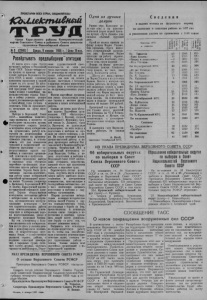 8 января 1958 года, № 3 КОЛЛЕКТИВНЫЙ ТРУД 3 Л&сьма в редакции; Г о т о в и т ь с я к Всесоюзной переписи Новогодняя ёлка в колхозе Весело встретили Новый год жители села Карасарт. У здания клуба, куда собиралась молодежь на праздник, возвышался Дед Мороз, В руках у него плакат «С Новым годом!» Помещение клуба празднично украшено.. Сверкает яркими огнями новогодняя елка. О великих достижениях советского народа за прошедший год и больших задачах на 1958 год россказал собравшимся С. Фарфутдинов. Затем состоялся новогодний концерт колхозной художественной самодеятельности. Долго аплодировали колхозники Е. Тлетову,' В. Байсебенову, Д. Кудайбер- генову, К. Еунязову, исполнителям* ролей пьесы «Зимняя| сказка». Девушки К. Апаева и I И. Латыпова исполнили несколько таджикских танцев. После концерта собравшиеся хороводом пели песни вокруг елки, танцевали, играли в игры. В ковце вечера были отмечены подарками лучшие маскарадные костюмы. Колхозники остались довольны вечером. Е. Рыспаев. Решение состоялось. Совет Министров С С С Р в феврале 1957 года принял постановление о проведении в январе 1959 года Всесоюзной переписи населения. Перепись населения является делом большой государственной важности. Она будет проводиться в Советском Союзе в четвёртый раз — через двадцать лет после последней, которая проводилась в 1939 го ду. За этот период в нашей стране произошли большие как социально-экономические и культурные изменения, так и в численности и составе населения. Два года члены правления колхоза .Заветы Ильича' решают вопрос о ремонте помещения клуба во второй бригаде.., а клуб .каким был (без окон, без дверей, с отлетевшей штукатуркой;, таков и есть, Из писем селькоров. Вначале решение ...а в конце концов ничего было совершенно нельзя было понять, ясное... ПО СЛЕДАМ НАШИХ ВЫСТУПЛЕНИЙ „Нет заботы о культурном отдыхе1' В письме, опубликованном под i Секретарь партийной оргаяиза- таким заголовком в 152 номере I дни тов. Пилипенко сообщил, ре- нашей газеты за 20 декабря 1957 года, говорилось, что на участок .Заготскота" (село Русско-Стеклянное) не доставляется почта и не демонстрируются там кино- час готово, организована доставка фильмы, ! газет и писем на участок. дакции, что факты, изложенные в письме, подтвердились. Помещение для показа кинофильмов сейВ материалах предстоящей переписи населения найдут подробное отражение происшедшие изменения в количестве ежегодного естественного прироста населения, увеличения сред ней продолжительности жизни советских людей по сравнению с дореволюционным периодом, размещения населения. Итоги Переписи будут являться ценнейшими данными для планирования дальнейшего развития народного хозяйства нашей страны. Чтобы предстоящая Всесоюзная перепись населения прошла успешно, необходимо провести большие подготовительные работы. Подготовка к переписи — очень сложное и трудоемкое дело. Поэтому правительство отвело для этой цели около двух лет, выделило большие средства, разрешило привлечь к участию в ней большое количество людей. Некоторая подготовитель- i ная работа к Всесоюзной пен а с е л е н и я реписи населения проводится и в нашем районе. В ней участвуют прежде всего работники райинспектуры ЦСУ , сельских и городского Совета, органов милиции и некоторые другие. Аппарат Карасукского районного отдела милиции, например, ведет пр