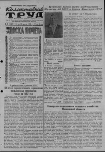 ПРОЛЕТАРИИ ВСЕХ СТРАН. СОЕДИНЯЙТЕСЬ! 1CbUU£Jcrnu&§mu <JpiaH Кара< у кско го райкома К ом м у нм и ич еск»»и ■партии С оветскою Союза и районно го Совета депутатов труд ящ ихс я Новосибирской области Ns 13 '2353) I? Гр^ля, Р9 янвапя 19*Я г. ! ||рня iRitnp. За перевыполнение пр<изволственных планов и заданий в 1957 году на районвую Доску почета заносятся.: Завод строительных материалов . (директор А. Мелехов, секретарь парторганизации Н. Степаненко). Вильмс В. Д„ штамповщик завода строительных материалов, выполнивший годовой план на 260 процентов. Морев В . А., зиговщик завода строительных материалов, выполнивший годовой план на 220 процентов. Гресс В. С., зиговщик завода строительных материалов, выполнивший годовой план на 200 процентов. Булгакова 3 . А., мастер-швея завода'строительных материалов, выполнившая годовой план на 180 процентов. Деревянкина 3., старший обжигальщик завода строительных материалов, выполнившая годовой план на 135 пропен!Ов. Луцко И. Л ., шофер молочноконсервного комбината, выполнивший план грузоперевозок ва 152 процента. Холодяев Н . Д ., старший кочегар молочноконсервного комбината. Глок Э. А., формовшик райпромкомбината, выполнившая готовой план на 123 проц. Баган Д., сушильщице райпромкомбината, выполнившая годовой план на 12<•процентов. Сизикова Н. А., мастер к ндитерского цеха пи- шекомбината, выполнившая годовой план на 140 процентов. Завадская М. С., мастер кондитерского цехи пн- щекомбината, выполнившая годовой план на 135 процентов. Злыгостев А. Г . , боец скота мясокомбината, выполнивший головой план на 150 процентов. Ломаковский В . Я . , плотник мясокомбината, выполнивший годовой план на 120 процентов. В райи спол ком е и р ай ком е КПСС Об итогахсоциалистического соревнования промышленных предприятий города за 1957 год Рассмотрев итоги соревно-,ющей значительный удельный вачия промышленных предприятий города за 1957 год, бюро PR КПСС и иг.пол ком районного Сонета депутатов трудящихся отметили, что в вес в ассортименте выпускаемых изделий. В то же время ими значительно перекрыт план по второстепенным видам, за счет которых и было дорезультате улучшения руководства предприятиями, более полного использования рабочего времени, повышения производительности труда, годовой план выпуска валовой продукции промышленностью рай оиа выполнен на 102, 7 процента. Выпуск валовой продукции по ср 1ВНСЯИЮ с 1956 годом возрос в денежном выражении на 6 .192 тыс. рублей или на 12,1 процента. П з семи промышленных предприятий района шесть выполнили установлевный план по валовой продукции и толь о мясокомбинат не справил ся с годовой программой, выполнив план истекшего года только на 97. 3 процента. Райисполком и райком КПСС в то же время отметили, что отдельные предприятия (промкомбинат и молочноконеерв ный комбинат) хо тя и добились выполнения годового плана по выпуску валовой продукции В Целом, однако они не выполнили плана по гла внейшим видам продукции, иместигнуто выполнение плана но валовой продукции в целом. Победителем в социалистическом соревновании промышленных предприятий признан заиод строительных материа лов (директор тов. Мелехов, секретарь парторганизации тов. Стеааненко), выполнивший годовой план на 105,3 процен та но валовой продукции и на 9 7 ,2 процента по ассортимен ту . За заводом оставлено не реходящее Красное знамя, при сужденное рму по итогам работы за 10 месяц