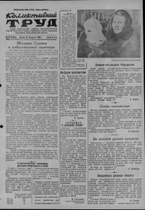 2 КОЛЛЕКТИВНЫЙ ТРУД 19 февраля 1958 года, № 22 Я стала комсомолкой /г февра- О ля 1958 года. Никогда не* забуду эту дату. В этот день я стала комсомолкой. Еще занимаясь в младших классах, читая книги и слушая рассказы старших товарищей о делах комсомольцев, я невольно представляла их волевыми, смелыми, решительными, с мужественным лицом, чистой и светлой душой. Тогда я не могла стать комсомолкой, потому что была мала, как мне говорили, и многого не правильно понимала. Зная, каким должен быть человек, получивший комсомольский билет, я старалась учиться всему этому, перенимать все то хорошее, чем славится комсомол нашей страны, и воспитывать эти качества в себе. П вот я стала ученицей 8-го класса. Однажды после уроков ко мне подошла пионерская вожатая нашей школы Ульяна Яковлевна Каменская и, побеседовав со мной, предложила готовиться к вступлению в комсомол. Я сразу же взялась тщательно изучать Устав ВЛКСМ. Всё, что мне и другим готовящимся к вступлению в Когда мы ознакомились с Уставом, меня и моих друзей слушали вначале на открытом классном собрании, затем принимали на общешкольном собрании, где задавали много вопросов. Ответила я на все правильно. Особенно волновалась я, когда пришла на бюро в райком комсомола. А когда открыла дверь в комнату, где находились члены бюро, и увидела их приветливые лица, волнения как не бывало. После нескольких вопросов, на которые я ответила хорошо, секретарь т. Стрижов сказал, что я принята в комсомол Но самым волнующим был для меня вечер в школе, когда вручали комсомольский билет. Вечер прошел торжественно и весело. За столом прези диума сидели директор школы С. В. Володюшкин, представители райкома комсомола и старейший член Коммунистической партии В. В. Трахименок. Комсомольские билеты получали 25 учащихся восьмых классов, которые вручал нам В. В. Трахименок. Я так волновалась в ожидании моего вызова, что не помню всего, что говорили. А когда назвали мою фамилию, сердце застучало так сильно, комсомол товарищам было не словно хотело выскочить из ясно, нам просто и доходчиво груди. Под аплодисменты я_пов проведенной беседе разъясняла У. Я. Каменская. дошла к столу, товарищ Трахименок с улыбкой крепко по жал мне руку и подал маленькую книжечку с красными корочками. Зал зааплодировал еще сильнее. Перед глазами сразу встали герои Краснодона, Александр Матросов и другие герои-комсомольцы, отдавшие свою жизнь за наше счастье. Мне захотелось стать такой же сильной как они, и отдать все свои силы и знания за наше светлое будущее — коммунизм. Меня поздравляли товарищи и подруги, учителя, все, кто был на вечере. Я и мои товарищи, ставшие теперь членами великой армии ленинского комсомола, знаем, что еще не можем поднимать целинные земли, выплавлять миллионы тонн стали, строить электростанции, но мы можем хорошо учиться и помогать нашим старшим товарищам. И мы будем учиться так, чтобы быть достойными ленинцами, а по окончании школы вместе с многочисленными энтузиастами включимся в строительство новых заводов, фабрик, культурно-бытовых учреждений в нашей стране, будем трудиться на необъятных просторах колхозных полей, чтобы еще богаче и краше, чтобы еще могущественнее была наша любимая Родина. Л. Злобина, ученица 8-го кл. Караеукской средней школы. ПЕРЕДОВЫЕ ДОЯРКИ РАЙОНА (Показатели за январь в литрах) Совхоз „О ктябрь" Трошин