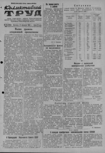 2 КОЛЛЕКТИВНЫЙ ТРУД 21 февраля 1958 года, № 28 Коллективный организатор Перед нами очередной номер стенной газеты «Кооператор». Выпущена она накануне районной конференции пайщиков, Этому и посвящена передовая статья, которая обобщает кри тичесвие замечания пайщиков, высказанные ими на участковых собраниях и собраниях уполномоченных сельпо в адрес работников торговли. Передовая статья указывает на те серьезные недостатки, которые были допущены в работе правления Октябрьского сельпо, сообщает, что уполномоченные пайщиков в Рассказовском сельпо, не утвердили председателем правления тов. Юсупова, который решал все вопросы самолично, не опирался на актив. В статье отмечаются недостатки в работе Карасукского горпо, на которые указывали пайщики на собраниях: выпечка недоброкачественного хлеба, ненормальности в торговле молоком, малый завоз товаров в торговые точки, не обеспечивающий спрос покупателей. «Отчетно-выборная кампания в нашей системе совпала с подготовкой к выборам в Вер ховный Совет СССР,- говорится в заключение статьи.— Коллективы сельпо Черпокурьин- ского (председатель т. Пономарев) и Хорошинского (т.Кривцов), успешно справляясь с планами реализации товаров, взяли обязательства встретить день выборов Верховного Совета выполнением квартального плана по всем показателям». В газете напечатано несколько небольших корреспонденций стенкоров. Одна из них « ассказывает о том, что швея адежда Боловолова хорошо работает на производстве и успешно учится в школе рабочей молодежи, а вот машинистка В Холкива и в работе не проявляет особого огонька и учиться в школе перестала. Газета резко критикует председателя рабкоопа совхоза «Октябрь» т. Рослякова и заведующего складом т. Ван- дюкова, по вине которых ис порчено товарной продукции на 40 тысяч рублей и требует, чтобы они понесли за это материальную ответственность. В заметке «Плохое в Хорошем» критикуется работа повара столовой Хорошинского сельпо т. Бухнер, которая приготовляет только заказные блюда, чем нарушает и затрудняет нормальное обслуживание населения. А вот другая корреспонденция. Она озаглавлена «Премии за... плохую работу». В ней говорится о том, что в отчетном докладе на собрании уполномоченных пайщиков председатель горпо т. Пешков сообщил, что за истекший год план товарооборота выполнен на 94,5 процента, а кооперирования — всего на 17 проц. Сорвано выполнение плана паенакопления и получения прибылей, допущен перерасход по зарплате на 136 тыс. рублей, большой остаток депонентных средств сверх нормативов, большая сумма выплачена в порядке штрафов. «Уполномоченные не стали много думать над этими циф рами,— говорится в заметке,— и решили: премировать пред седателя сельпо т. Пешкова 300 рублями, завторга т, Мас- терова— 250 рублями и бух галтера т. Комбарова— 200 рублями». Резко критикуя недостатки в работе, раскрывая передовой опыт работников торговли, газета номер за номером все больше привлекает к себе внимание читателей. Об этой газете небольшого формата б коллективе работников райпотребсоюза говорят, что она выступает действительным организатором. И это так. Редколлегия этой газеты состоит из 15 человек. Самое активное участие в выпуске газеты принимают Е. Крупская, Н. Федоряк, 3. Горбова, В. Полникова. И, конечно, организатором всей работы редколлегии выступает 