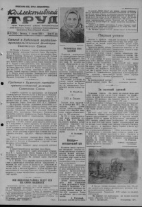 4 апреля 1958 года, № 41 КОЛЛЕКТИВНЫЙ ТРУД Люди скромных профессий Мастер Таисия Козулина —Пожалуйста, садитесь. Вас.Максимовна постувила рабо- побрить? Постричь?— вежливо тать в 1937 году. С первых обращается к вошедшему кли-' же дней работы в парикмахеренту Таисия Максимовна Козулина и принимается за дело. С любовью и заботой обслуживает она клиентов. Умелыми руками опытный парикмахер быстро и ловко стрижет, бреет, затем освежает душистым одеколоном, аккуратно смахивает щеткой попавший на клиента волос и, не задерживаясь, приглашает следукщего. Таисию Максимовну уважают клиенты за ее вежливость и хорошее обслуживание. Боль шой любовью пользуется она среди работников парикмахерской горкомхоза по улице Октябрьской. где работает уже свыше 10 лет. Много различных работ выполняла Таисия Максимовна до работы в парикмахерской С детских лет позвала она трудовую жизнь. Шел 1920 год. Молодая республика Советов восстанавливала разрушенные гражданской войной и иностранной интервенцией сельское хозяйство, фабрики и заводы, строила первые электростанции, налаживала жизнь трудящихся. Таисия Козулина воспитывалась в семье, где было двенадцать детей. Отец умер. Мать не в состоянии была обеспечить одна столь многодетную семью. Поэтому девушке учиться *е пришлось: надо было идти на работу. Подростком ев отдают в чужие люди нянчить детей, чтобы как-нибудь прокормиться. В 1927 году Таисия Козулина работает на строительстве элеватора в Карасуке. затем в городе Купино. В парикмахерскую Таисия ской ей полюбилась эта специальность, поэтому с большим старанием и усердием относилась она к делу и вскоре стала хорошим мастером. Кажется, жить бы да радоваться, заниматься любимым делом. Но еудьба молодой женщины, как и миллионов советских людей, сложилась иначе. Началась Великая Отечественная война, заставшая ее на У к раине. С первых же дней войны муж ушел на фронт и вскоре погиб. Начались тяжелые будни для Таисии Максимовны. Но молодая женщина не сдалась, не пала духом. Она работает мастером при военкомате, ночью под разрывами вражеских снарядов роет окопы. После трех месяцев— эвакуация в Сибирь. Таисия Максимовна возвращается в Карасук и работает мастером при военном госпитале, заботливо обслуживая раненых бойцов. Отгремели бури войны, советский народ праздновал победу. После войны товарищ Козулина не бросает свой скромный труд, продолжает работать масмром в парикмахерской горкомхоза города Еа- расука. За свой скромный труд во врем* войны Таюия Максимовна награждена двумя медалями «За доблестный труд в Великой Отечественной войне» и «За победу над Германией». За культурное обслуживание клиентов и выполнение планов она имеет много благодарностей, неоднократно награждалась денежными премиями. | П. Толстиков. f l u C b J U O В ГИёЛ£И€41М М Д Г Г . ' г — -■ " ■1■■ »— '■ 1_г В - I . В Е Ч Е Р С К А З О К Весело и содержательно прошли весенние каникулы у учащихся Карасукской начальной школы № 2. Много разнообразных мероприятий было проведено с ребятами коллективом учителей. 2 апреля пионеры под руководством пионерской вожатой школы Б. Плахута и библиотекарем Д. Кайгородовой проведен вечер сказок. Помещение, в котором проходил вечер, пиоверы оформили плакатами «Книга— мой друг», «Любите книгу — источник звания», «Читай сказки». Рядом вывешен список сказок, рекомендуем