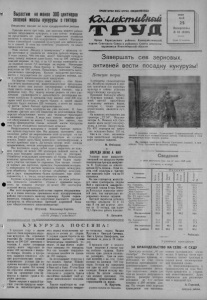 Вырастим не менее 300 центнеров зеленой массы кукурузы с гектара Открытое письмо ко всем кукурузоводам района Прошло всего три года, как колхозы нашего района начали возделывать кукурузу, а уже сейчас невозмож- но представить ни одно животноводческое хозяйство колхоза и совхоза без кукурузного силоса. Кукуруза стала главнейшей кормовой культурой для дойного скота и свиней. В этом мы особенно убедились на опыте прошедшей зимовки. Наш колхоз „Вперед к коммунизму" в прошлом году заготовил в среднем на каждую дойную корову по 9 тонн силоса. Что это нам дало? Благодаря кукурузному силосу подняли удои более, чем на 300 литров от каждой коровы за год, а за 4,5 месяца нынешнего года надоили около 7,5 центнера на корову. Некоторые доярки, например, Нина Кротер и Валентина Сибина, получили по 900 литров. Повысилась упитанность скота, увеличилась свиноферма. Колхоз аккуратно рассчитывается с государством по сдаче и продаже молока, мяса и другой животноводческой продукции. Но партия ставит перед нами задачу — еще более увеличить производство животноводческой продукции. В этих целях наш колхоз запланировал в ближайшие годы иметь сочных кормов в 2—3 раза больше, чем в прошлом году. Эту задачу можно решить за счет увеличения урожайности и дальнейшего расширения посевов кукурузы. В прошлом году колхоз сеял 300 гектаров этой культуры, а нынче только в одной нашей бригаде будет посеяно 225 гектаров, а всего по колхозу почти вдвое больше прошлогоднего. Большую часть кукурузы мы уже посеяли. В ближайшие два-три дня сев закончим на всей площади. Наш агрегат обслуживают всего два человека—тракторист и машинист сеялки, А ведь еще совсем недавно агре-" гат обслуживало не менее 7 человек. Это значит, что теперь производство тонны зеленой массы кукурузы нам будет обходиться значительно дешевле. Возделывание кукурузы в первой бригаде правление артели поручило нам. Мы должны выполнить весь комплекс работ по выращиванию этой культуры от посева до уборки. Кукурузу мы разместили на лучших землях. Зимой здесь было проведено снегозадержание, а весной прибивка влаги. До начала посева поле дважды продисковали, внесли минеральные удобрения. Мы поставили перед собой задачу вырастить на каждом гектаре не менее 300 центнеров зеленой массы. В этом деле большое значение имеет уход за посевдми. Обработку междурядий затягивать не будем. Используя комплекс прицепных орудий, все время будем содержать участки чистыми от сорняков. Как только появится первых два листочка, проведем боронование всходов. С появлением 4-5 листков проведем первую междурядную обработку. Вторую и третью обработку междурядий в двух направлениях будем проводить при необходимости, т. е. тогда, когда появятся сорняки. Курские кукурузоводы обратились ко всем работникам сельского хозяйства страны с призывом выра- I стать на каждом гектаре не менее 300 центнеров зеленой массы кукурузы. Мы этот патриотический почин горячо поддерживаем и в свою очередь призываем всех кукурузоводов района последовать нашему примеру. Будем соревноваться. товарищи, за получение высокого урожая кУкУРУзы,за обеспечение прочной кормовой базы для общественного животноводства! Федор Штумпф, Владимир Карпов, кукурузоводы первой бригады колхоза „Вперед к коммунизму'. ПРОЛЕТАРИИ ВСЕХ СТРАН. СОЕДИНЯЙТЕСЬ! iCoUueJcm uSim M Орган Карасукск