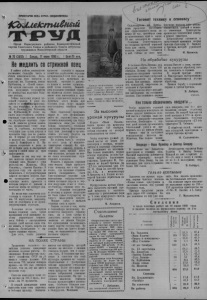 т ^ Ч ПРОЛЕТАРИИ ВСЕл СТРАН, СОЕДИНЯЙТЕСЬ! {CbUueJcmutfnsiu Т Р У Д Орган Карасукского райкома Коммунистической партии Советского Союза и районного Совета депутатов трудящихся Новосибирской области №70 (2410) 1[ Среда, 1 июня 1958 г, I Цена15 коп. Не медлить со стрижкой овец «г ' >■ В нашем районе овцеводство составляет большую часть в общем животноводстве. Большие отары овец имеются в колхозах им. Тельмана, имени Куйбышева, в «Новой семье». Эти артели ежегодно за сданную продукцию государству от овцеводства получают большие доходы. Сейчас наступил период весенней стрижки. В ряде хозяйств её начали организованно, как например, в колхозах «Путь Ленина», им. Тельмана, им. Куйбышева. К этому заранее подготовились: отремонтировали стригальные агрегаты, подобрали опытных стригалей, запасли ручные ножницы, организовали точку ножниц и гребенок, изготовили стеллажи для сушки шерсти и припасли тару для ее упаковки. В первые же дни стрижки в колхозе им. Тельмана стригали Я. Никифоров и В. Васильев остригают в день до 40 и более овец и настригают шерсти с одной овцы до трех килограммов. Однако до сих пор еще не все колхозы начали весеннюю стрижку овец. Медлят с этим колхозы им. Жданова, «Жол Сталина», «Заветы Ильича». В прошлом году эти артели не справились с государственным планом поставок шерсти. Нынче промедление с началом \ стрижки может привести к потерям шерсти от линьки и колхозы вновь не доберут значительную её часть. Не везде еще закончена подготовка к стрижке. В колхозе им. XI партсъезда, например, еще не подобраны и не проинструктированы стригали. Холодная весна затянула начало стрижки овец. Сроки проведения этой кампании по. этому значительно сократились. Сейчас с наступлением теплых дней многие овцы стали линять и терять шерсть на выпасах. Промедление с началом стрижки опасно. Для того, чтобы успешно провести стрижку в каждом хозяйстве, необходима хорошая организация.В этом деле должно быть все продумано до мелочей, начиная от рабочего плана и кончая организацией точки ножниц. Важнейшим условием успешной стрижки является полное использование всех имеющихся в колхозах стригальных агрегатов. Добиться этого можно при условии, если будут заранее подготовлены опытные стригали. Надо тщательно продумать также и всю организацию работ по стрижке овец: подготовить помещение, где будут укрываться овцы на случай дождя, соорудить стеллажи для сушки шерсти, подготовить тару для упаковки и организовать доставку шерсти на заготовительные пункты. Не должны быть в стороне от этого дела и машинно- тракторные станции. Их прямой долг—оказать помощь в стрижке овец прежде всего тем колхозам, которые не имеют своих механических стригальных агрегатов. Медлить с началом стрижки овец нельзя. Опыт прошлого года показал, что в тех колхозах, где весенняя стрижка начата своевременно, были благоприятные условия для выполнения государственного плана поставок шерсти в первом полугодии. Авот в совхо. зе«0ктйорь» стрижку овец начали с большим опозданием и поэтому в первом полугодии не было сдано государству ни одного килограмма шерсти. Медлят здесь с началом стрижки овец и нынче. Задача состоит в том, чтобы в ближайшую пятидневку повсеместно завершить стрижку овец, ни в коем случае не допустить потерь шерсти на выпасах от линьки. Следует без промедления организовать сда