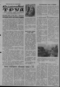 l ПРОЛЕТАРИИ ВСЕХ СТРАН. СОЕДИНЯЙТЕСЬ! 1C b U j£ Jc rn U & H £ lU Орган Карасукского райкома Коммунистической партии Советского Союза и районного Совета депутатов трудящихся Новосибирской области №j2 (2242)! Среда, 9 июля 1958 г. 1Цена 15 коп. Активнеевестизаготовкукормов Хорошие травы выросли нынче на колхозных и совхозных лугах. Все хозяйства сеяли на сено озимую рожь и овес. Они также в большинстве своем удались хирошие. Но обильный травостой еще не означает, что скот будет в достатке обеспечен на зиму грубыми кормами. Заготовка кормов—трудоемкая кампания. Трудоемкая, во-первых, потому, что не все процессы механизированы и, во-вторых, на темпы ее оказывает влияние уборка урожая. Июль—самый напряженный период сенозаготовок. В это время нужно с максимальной пользой для дела использовать каждый погожий день, каждый час. Надо поставить дело так, чтобы до начала массовой уборки урожая заготовить как можно больше кормов. А урожай нынче растет обильный и для уборки его потребуется много времени, сил и средств. Правильно оценивая эту обстановку, многие хозяйства вовремя и активно включились в сеноуборку и с каждым днем наращивают темпы. Пример в этом показывают члены сельхозартели «Путь Ленина» (председатель В. Бунин). Здесь косовицу трав начали еще в конце июня. На лугах работает шесть сенокосильных агрегатов. Как только поспела на сено рожь, все силы были брошены на нее, и она была скошена, подвезена к фермами заскирдована буквально за несколько дней, а ржи было посеяно около 500 гектаров, и каждый гектар дал около 20 центнеров добротного сена. Примечательно в этом колхозе и то, что все сено стараются сразу подвозить к фермам, не допускать большого разрыва между косовицей и скирдованием. Для ликвидации этих разрывов здесь вошло за правило организовывать ночную скирдовку. Не прибегая к посторонней помощи, в колхозе пока не испытывают недостатка рабочих рук. На ночную скирдовку выходят плотники, чабаны, механизаторы, работники конторы и др. В этом немалую роль играют меры материальной заинтересованности, разработанные и утвержденные на совете колхоза. Неплохо поставлено дело с заготовкой кормов и подвозкой их к фермам в колхозах «Вперед к коммунизму», им. Тельмана, им. Куйбышева, наращивают темпы фермы совхоза «Октябрь». Однако многие хозяйства все еще включаются в косовицу трав. Хорошая инициатива была проявлена в колхозе «40 лет Октября». Здесь было решено создать три специальные механизированные сквозные бригады по заготовке кормов. Но инициатива правления не увенчалась успехом. Создана была только одна бригада, да и та работает с большими помехами. По такому большому колхозу скошено немногим более 2000 га трав и заскирдовано менее 2-х тысяч центнеров сена. Медленно разворачивает сенокосные работы совхоз имени Дзержинского. Руководители этого колхоза любят ссылаться на недостатки сенокосилок, но и имеющиеся в наличии здесь не все используются из-за плохой работы тракторов. До сих пор еще во многих хозяйствах не скошена рожь на сено. Медлить с этим нельзя. Рожь повсеместно перестаивает, теряет свои ценные кормовые качества. На заготовках сена сейчас дорог каждый час. Всю технику—на луга. Как можно больше заготовим сена до на- чала массовой уборки урожая! Смотр санитарного состояния Исполком районного Совета своим решением от 26 июня решил пров