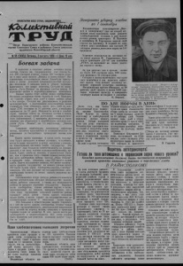 КОЛЛЕКТИВНЫЙ ТРУД 8 августа 1958 года, № 95 Свалить весь хлеб в валки за10 рабочих дней и подобрать за 15 так решили механизаторы и полеводы артели имени Джамбула Урожай уберем без потерь С первых дней уборки важное значение приобретает борьба с потерями урожая. Своевременно и без потерь убрать весь хлеб — такую задачу ставят перед собой труженики артели. Прошлые годы, когда урожай убирали прямым комбай- нированием, допускались большие потери от осыпания хлеба на корню. Однако если не принять необходимых мер, то и при раздельной уборке можно потерять много хлеба. В прошлом году, например, мы мало обращали внимания на правильную отбивку загонок для работы машин. В результате чего загонка получалась неправильная, с клином, при раскосе которого приходилось делать развороты по валкам и вдавливать их в землю. Пытались косить и вкруговую,что также на наш взгляд, не дает нужных результатов, потому что получаются со временем крутые углы и трактор при разворотах наезжает на валки. Если делать пологие прокосы, то на это затрачивается много времени, и зерно, полученное от прокосов самоходным комбайном в восковой спелости, является некондиционным. От этого мы тоже отказались. Теперь при отбивке загонок учетчик А. Темиржанов строго отмеряет одинаковую ширину загонки и ставит на обоих концах полос вешки. Ширина чзагонки отбивается небольшая, чтобы не терять лишнее время на развороты. При выезде с полосы агрегат останавливается и при работающем моторе прогоняет имеющийся на полотне хлеб на месте. Этим самым не растягивает его на дорогу. От машинистов жаток будем добиваться равномерной укладки валков, чтобы подборщики могли всю массу хорошо захватить и вымолотить. Все комбайны оборудованы зерноуловителями с металлическими днищами, выгрузными шнеками с нарощеяными рукавами из мешковины. Нарастили ветровые щиты, чтобы через них не перебрасывало колосгя при подборке. Всех членов правления закрепили за уборочными агрегатами, которые несут ответственность за качество убор ки. Все это даст возможность провести уборку с минимальными потерями зерна. К. Ж ангазинов , агроном. Организуем культурный отдых Будем соревноваться На собрании, проведенном на днях, все механизаторы артели взяли на себя повышенные социалистические обязательства. Первым выступил старейший опытный комбайнер Андрей Васильевич Бауэр. Он с твердостью заявил: — Скошу в валки сцепом двух комбайнов „РСЛ1-8“за 10 рабочих дней 1000 гектаров и за 15 дней на этой площади произведу подборку. Он вызвал на соревнование Якова Ивановича Гана- мава, работающего в этой же бригаде на сцепе двух комбайнов „С-6". — Вызов принимаю,— сказал Яков Иванович,— обещаю ни в чем не отстать. Повышенные обязательства взяли и молодые комбайнеры Григорий Крамской п и Геннадий Дорофеев. Обсудив свои обязательства, механизаторы решили вы звать на соревнование комбайнеров из других колхозов, чтобы соревнование за высокие темпы уборки и отличное качество работ разгоралось повсеместно. Андрей Васильевич Бауэр изъявляет желание посорев новаться с Николаем Объед новым из колхоза „Путь Ленина". Яков Иванович Гана- ман вызывает Филиппа Киндера из колхоза им. XX партеъезда. Григорий Крамской просит ответить на его вызов Степана Спиридоновича Москаленко из колхоза „Заветы Ильича", а Геннадий Дорофеев— Якова Ива