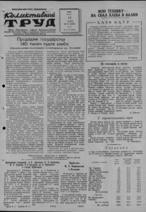 — -г ПРОЛЕТАРИИ ВСЕХ СТРАН, СОЕДИНЯЙТЕСЬ! ~ ~ iC bU J£Jcm u6Hm i Орган Карасукского райкома Коммунистической партии Советского Союза и районного Совета депутатов трудящихся Новосибирской области Цена 15 копеек. П р о д а д и м г о с у д а р с т в у 1 4 0 т ы с я ч п у д о в х л е б а Обязательства колхозников сельхозартели им. Тельмана v V Большую заботу проявляют Коммунистическая партия и Советское правительство о дальнейшем развитии колхозного хозяйства. Постановление Совета Министров СССР об отмене обязательных поставок и установлении единых закупочных цен на продукты сельского хозяйства открывает большие возможности fljfe дальнейшего увеличения производства сельскохозяйственной продукции, повышения производительности труда, снижения себестоимости продукции полеводства и животноводства. Всё это в конечном итоге позволяет резко поднять экономику артельного хозяйства, повысить материальный и культурный уровень колхозников. Это видно на примере нашей артели. Нынче мы от продажи государству продукции сельского хозяйства по новым ценам получим доход значительно больший, чем в прошлом году. За счёт повышения цен, а также за счёт увеличения производства продукции полеводства и животноводства наша артель в этом году получит доход 4 миллиона рублей, то есть вдвое больше, чем в прошлом году. Отвечая на заботу нашей родной Коммунистической партии и Советского правительства, мы включаемся в социалистическое соревнование в честь 41-й годовщины Великого Октября и берём на себя повышенные обязательства. Несмотря на холодную и запоздалую весну, колхозники и механизаторы нашей "артели провели в этом году весенний сев в лучшие сроки и на высоком .агротехническом уровне. Сейчас на по- ‘ лях артели зреет богатый урожай. Мы уже начали жатву зерновых. Нынче все посевы уберём только раздельным способом. Подсчитав свои возможности, мы решили жатву провести за 14 рабочих дней. Подборку закончим за 17 рабочих дней и к 25 сентября выполним план продажи хлеба государству. Мы берем обязательство в общий 'хлебный поток страны направить 140 тысяч пудов добротного кулундинского зерна. В нашей артели за последний год сделано немало по подъему колхозного жиОбязательства обсуждены и приняты на производственных совещаниях бригад артели Пребывание товарищей А.Б. Аристова, Л- И. Брежнева, М. А. Суслова, Н. С-Хрущева, Д. С. Полянского в городе Куйбышеве Суслов, Д. С. Полянский осВСЮ ТЕХНИКУ - НА СВАЛ ХЛЕБА В ВАЛКИ во — Х Л Е Б И Д Е Т вотноводства. Нынче значительно повы сится продуктивность этой отрасли хозяйства. Годовой план сдачи и продажи молока государству мы уже выпол нили. До конца года продадим госу дарству еще не менее трех тысяч центнеров молока. Общее производство этого вида продукции у нас в артели нынче составит 100 центнеров на каждые 100 гектаров сельскохозяйственных угодий, что на 24 центнера больше, чем в прошлом году. До 7 ноября, то есть к 41-й годовщине Великого Октября выполним план сдачи мяса и продадим сверх плана 420 центнеров мяса, в том числе свинины 60 центнеров. Государству будет продано более 5 тысяч штук птицы, а всего продадим государству 1280 центнеров мяса. Производство мяса в артели на 100 гектаров сельхозугодий составит 25 центнеров. В этом году мы произведем на каждые 100 гектаров угодий по 100 килограммов шерсти—на 11 килограммов больше, чем в прошлом году. М
