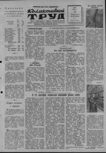 КОЛЛЕКТИВНЫЙ ТРУД 17 августа 1958^ года, № 99 V В РК КПСС и райисполкоме О мерах по обеспечению организованного проведения уборки урожаи, заготовок иперевозов сельскохозяйственных продуктов Бюро райкома партии и исполком районного Совета депутатов трудящихся приняли совместное постановление, направленное на обеспечение организованного проведения убор ки урожая, заготовок и перевозов сельскохозяйственных продуктов. Этим постановлением обязываются партийные организации, руководители колхозов, РТС и совхозов, специалисты сельского хозяйства установить пов седневный контроль за ходом созревания хлебов, чтобы при наступлении ранней фазы восковой спелости зерновых не медленно включать в работу все рядковые жатки и переоборудованные комбайны. Постановление напоминает руководителям хозяйств и агрономам, что они несут персональную от ветственность за своевременное начало и проведение раздельной уборки зерновых. Для организации бесперебой ной работы всех агрегатов и обеспечения выработки на жат ве хлебов на каждый режущий аппарат не менее 30 гектаров в сутки руководители хозяйств обязываются оборудовать агрегаты электроосвещением и установить двухсменную работу. Предложено практиковать повсеместно групповой метод работы агрегатов, позволяющий более производительно использовать рабочую силу и транспортные средства, улучшить техническое обслуживание и взаимопомощь. В категорической форме запрещено использовать тракторы на гусеничном ходу с одной лафетной жаткой и предложено широко практиковать спаривание комбайнов и жаток. Руководителям хозяйств и секретарям партийных организаций предложено применять меры материального поощрения передовиков, практиковать передачу массивов хлебов под уборку по аккордной оплате, принять меры к тому, чтобы подборку скошенного хлеба проводил агрегат, скосивший этот участок. Агрегат, убравший полосу с хорошим качест вом, должен уложить копны соломы в рядки в продольном и поперечном направлениях. Директорам совхозов и РТС, председателям колхозов предложено повсеместно механизи ровать погрузку и разгрузку зерна и силосной массы, воспрещено посылать сопровож дающих лиц ва автомашинах с зерном, зерно выдавать шо форам взвешенным и возлагать на них ответственность за сохранность. Директорам совхозов и РТС, председателю колхоза «40 лет Октября» предложено переоборудовать имеющиеся стогоме татели «СТУ-0,7» на навесные волокуши и использовать их для стаскивания соломы с полос. Руководители хозяйств обязываются установить строгий контроль за правилами эксплу атации машинно-тракторного парка, не допускать к управ лению машинами лиц, неимею щих специальной подготовки и строго проводить техниче ские уходы. Руководители хозяйств сел и города, имеющие автотранс порт, обязываются закончить подготовку автомашин немед ленно и направить их на работы в колхозы и совхозы. Предложено каждому хозяйству иметь не менее двух кры тых токов и глубинных пунктов. Секретарям парторганизации и руководителям хозяйств пред ложено обеспечить в установленном порядке приемку убранных площадей, пресекать потери урожая при косовице, под борке, хранении и перевозке хлеба, принять меры к четкому и точному учету зерна, для чего направить весовщиками наиболее честных и подготов ленных лиц. Секретари пар