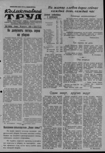 2 КОЛЛЕКТИВНЫЙ ТРУД 20 августа 1958 года, № 100 40-летию комсомола— достойную встречу На днях состоялся IV пленум райкома комсомола. Он обсудил вопрос „О работе комсомольских организаций в период хлебоуборки и о подготовке к 40-летию комсомола1. В работе пленума приняли участие заведующие сельскими клубами и библиотеками, комсомольский актив. Члены райкома и приглашенные приняли активное участие в обсуждении доклада секретаря райкома комсомола т. Стрижова. —Комсомольцы и молодежь нашей артели „Жол Сталина1 создали три комсомольско-молодежных комбайновых агрегата, которые работают сейчас на косовице и подборке валков,—говорит секретарь организации т. Апаев. —Совхоз„Октябрь“взял обя зательство отгрузить в государ ственные закрома миллион пу дов пшеницы,—говорит секре тарь организации т. Ремезов —Это большая и ответствен ная задача и навыполнение ее комсомольцы мобилизовали все свои усилия. Сейчас на жатве и подборке у нас работают пятнадцать комсомольско молодежных агрегатов. Все они соревнуются за быстрейшее проведение уборки и ежедневно перевыполняют в полтора— два раза норму. По итогам работы за день лучшему комсомольско-молодежному агрегату совхоза вручается переходящий красный вымпел комитета ВЛКСМ. Для обслуживания хлеборобов на период жатвы мы создали агитхудожест- венную бригаду. В день сорокалетия комсомола мы подведем итоги соревнования и передовиков премируем. Деньги для этих целей комсомольцы заработали на воскресниках. В подарок к 40-летию комсомола на 9 ферме силами молодежи построен новый клуб, а на заработанные деньги куплен радиоприемник. Но самым лучшим подарком будет сдача государству миллиона пудов хлеба нового урожая. Секретарь комсомольской организации колхоза „40 лет Октября" т. Мурашко рассказал, что они уже создали агит- художественную бригаду, которая выступает на полевых станах. Комсомольцы принимают активное участие в уборке. Шофер автороты т. Усенко заверил участников пленума, что водительский состав приложит все усилия к тому, чтобы без задержки перевозить хлеб на элеватор, а 40-летие комсомола встретить выполнением годового задания. Многих комсомольцев волновали недостатки в работе райкома комсомола, в организации культурно просветительной работы, слабая постановка внутрисоюзной работы на местах. Некоторые комсомольские организации работают плохо. Так, например, в колхозах им. Жданова, „ЗаветыИльича", в совхозе им. Дзержинского до сих пор не созданы комсомольско-молодежные агрегаты. Важнейшими задачами районной комсомольской организации в это время пленум считает активное участие всех комсомольцев и молодежи в уборке хлеба и сдаче его государству, улучшение работы по коммунистическому воспитанию молодежи и более деятельную подготовку к 40-ле- тию ВЛКСМ. Пленум обязал всех секретарей комсомоль ских организаций шире разъяснять постановление июньского Пленума ЦК КПСС „Об отмене обязательных поставок и натуроплаты за работу МТС, о новом порядке, ценах и условиях заготовок сельскохозяйственных продуктов". Пленум объявил районное социалистическое соревнование комсомольско молодежных агрегатов на косовице и подборке хлебов, соревнование молодых шоферов, занятых на перевозке хлеба. Пленум обязал секретарей комитетов ВЛКСМ колхозов и совхозов довести до каждого комсомоль