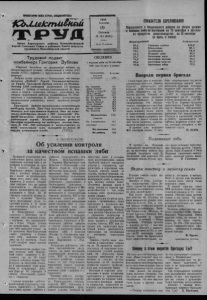 19 сентября 1958 года, № 113 У ЮНЫХ КУКУРУЗОВОДОВ КОЛЛЕКТИВНЫЙ ТРУД К О Н С У Л Ь Т А Ц И я В^прошлое1лето учащиеся Богословской семилетней школы на восьмой ферме совхоза „Октябрь" на 5 гектарах вырастили урожай кукурузы по 500 д с каждого гектара. За достигнутые успехи 10 юных кукурузоводов были награждены похвальными листами РК ВЛКСМ, а ученица 6-го класса Таня Поби- райко была участницей Новосибирского слета. Она была премирована бесплатной путевкой на всесоюзную детскую здравницу—пионерский лагерь „Артек", и нынешним летом хорошо там отдохнула. Весной нынешнего года учащиеся школы расширили посевную площадь под кукурузой вдвое и поставили перед собой задачу получить урожай не меньше прошлогоднего. Немало забот и труда вложили школьники Света Поби- райко, Нина Мурашко, Таня Адаменко, Люба Шиян и Тамара Боголей, чтобы сдержать данное слово. Ле* то выдалось не совсем благоприятное для выращивания кукурузы, но они старались все делать так, как учили их в школе. Всходы появились дружные, но оказались загущенными. Юные кукурузоводы проредили всходы, оставив в каждом гнезде по 3—4 растения, затем при появлении сорняков проводили междурядную ручную прополку.В течение лета участок содержался в чистом состоянии. Надежды ребят оправдались. Благодаря заботливому уходу кукуруза выросла хорошая, стебли достигали высоты до 3 метров. Сейчас кукуруза уже убрана и заложена на силос. Получилось,что каждый гектар и в этом году дал не менее 500 центнеров зеленой массы. На будущий год ребята решили просить у совхоза под участок кукурузы 15 гектаров. х В. Власов. Что дают колхозному крестьянству экономически обоснованные цены В райисполкоме О фантах бракодельства на уборке урожая в колхозах им. Куйбышева, ,,40лет Октября1' и „Новак семьи" В ряде колхозов района в допустили высокий срез пше- результате бесконтрольности ницы«Гордиеформе— 10» и на со стороны руководителей хо- площади 2,5 гектара не подо- зяйств, мало уделяется каче- брали много срезанных ко- ству уборки , что приводит к лосьев. Потери от такой рабобольшим потерям зерна ново- ты составили свыше 160 кг фо урожая. Так, в колхозе зерна, туи. Куйбышева тракторист Ми- Этот вопрос р'ассматривал- хайлевский В. Д. и машинист . ся на исполкоме районного лафетной жатки Морозов Г .Г. Совета депутатов трудящихся, жатву пшеницы вели на новы- За допущенные потери . зер- шенной скорости при высоком на на уборке урожая 1958 го- срезе— 20—25 см. В резуль- да на тракториста Михайлев- тате этого на площади 9 га ского В. Д. и машиниста ла- допустили потери 18 центне- фетной жатки Морозова Г. Г. ров зерна. из колхоза им. Куйбышева, Во второй бригаде сельхоз- бригадира второй комплексной артели «Новая семья» ком- бригады Долгова А. Е. и комбайнер Данилов Н. Т. до- байнера Данилова Н. Т. из пустил высокий срез зерно- сельхозартели «Новая Семья», вых (20— 25 см) в результате бригадира второй комплексной потери на участке в 37 гек- бригады Вольвач Н. А., ком- таров составили более 16 ц. байнеров Деркач Л. Д., Воль- Кроме этого, по вине бригади- вач II. П.,С-хоменко В. С. и Куд- ра комплексной бригады тов. рю И. А. из «40 лет Октября» Долгова вышеуказанный уча- дело передано прокурору рай- сток пшеницы не был подго- она для привлечения к судеб- товлен к уборке, валки с обко- ной ответственности, сов были свалены в траву и Кроме того комбайнеры не подобраны, а скормл
