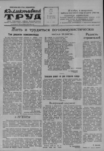 ПРОЛЕТАРИИ ВСЕХ СТРАН, СОЕДИНЯЙТЕСЬ! 4 С Ы Л и & с т и & т ш Орган Карасукского райкома Коммуниц ическк# партии Советского Союза и районного Совета депутатов трупжшихся Новосибирской области аммнг1:-мими|адш1!ви1Я ? 1»5Н 5 Мпнбрь 2 25 ■ Воскресенье 1 S z Л*140(2470) 1 р 1 :?■ % Игиа 1Г*юнеек т ш аЙШШШ!:!:;"- ‘•‘ift-ililililililoitil•iiS 23 ноября, в воскресенье, выборы народного суда второго участка ТОВАРИЩИ ИЗБИРАТЕЛИ! Активно явимся на избирательные пункты и отдадим свои голоса за кандидата в судьи Дину Ильиничну КРУПСКУЮ и выдвинутых кандидатов в народные заседатели! Г. Жить и трудиться по-коммунистически! Так решили комсомольцы На днях комсомольцы нашей организации собрались, чтобы обсудить тезисы доклада Н. С. Хрущева на XXI съезде КПСС «Контрольные цифры развития народного хозяйства СССР на 1959-1965 годы». Наш колхоз им. Куйбышева идет не в числе передовых. В животноводстве допущен отход молодняка, нынче по сравнению с прошлым годом снизились надои молока. В эхом году мы вырастили низкий урожай зерновых. Обо всем этом обстоятельно говорили комсомольцы, проявляя заботу о колхозных |елах. — Будем работать по-коммунистически,— так заявляют сейчас многие советские люди. Всюду рождается новое, коммунистическое отношение к труду. К этому зовут молодые сердца перспективы замечательного завтра, изложенные в контрольных цифрах семилетнего плана. Разве в такое время мы, сельские комсомольцы, можем быть безразличными к тому, что наша артель отстает от других? В наших силах вывести ее в число передовых хозяйств района. Для этого мало работать вместе со всеми и так, как все. Мы ста- перед собой задачу работать с напряжением всех молодых сил. Здесь же на собрании комсомольцы решили развернуть социалистическое соревнование в честь XXI съезда КПСС и активно включиться в проведение зимних агромероприятий, ремонт техники, в работу на животноводстве. - Партия призывает нас всеми силами укреплять животноводство. Наш колхоз тоже намечает за семилетие удвоить количество скота на фермах. Сейчас перед нами стоит неотложная задача—успешно провести зимовку скота. На собрании мы решили, чтобы большинство комсомольцев пошло на работу в животноводство. Три фермы у нас теперь комсомольско-молодежное. Молодые животноводы соревнуются за увеличение производства продуктов животноводства и сохранение поголовья скота. Наши молодые доярки взяли обязательство за зимний период (с 1 ноября по 1 мая) надоить не менее 850 литров молока в среднем на каждую фуражную корову. Молодые свинарки, телятницы и чабаны обязались сохранить все поголовье молодняка рождения 1958 и 1959 годов. На подвозку кормов у нас тоже вышли комсомольцы и молодежь. Создано 4 комсомольско-молодежных бригады по доставке кормов к фермам. Повысить урожайность наших полей невозможно без полного и своевременного проведения агротехнических мероприятий. Наши комсомольцы решили провести работы по накоплению снега на площади 4100 гектаров и вывезти в период до 1 марта местных удобрений (навоза) на комсомольско-молодежные участки кукурузы площадью 200 гек- тавов 1200 тонн. Сейчас механизаторы нашей артели начали ремонт тракторов и прицепного сельскохозяйственного инвентаря. Колхозные комсомольцы и в этом деле принимают самое активное участие. Все работы по подготовке техники к весне решено завершить ко дню открытия XXI съезда КПСС. П
