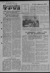 3 декабря 1958 года, №144 КОЛЛЕКТИВНЫЙ ТРУД 3 Пт^ьльа в Растут личные сбережения Сердечная благодарность В начале сентября на полевом стане второй фермысовхоза им. Дзержинского случился пожар, в результате которого со мнойпроизошел несчастный случай. Получив сильные ожоги, я в тяжелом, безнадежном состоянии был доставлен в хирургическое отделение Кара- сукской районной больницы. Больше двух месяцев провел я в постели. Благодаря правильному, усиленному лечению и внимательному уходу со стороны обслуживающего персонала отделения мне было возвращено здоровье. Сердечно благодарю хирурга В. Кокорина, медсестер М. Дудникову иМ.Щекоткину,восстановивших мне здоровье, вернувших к жизни и труду. Н. Мамонов. Нарушают правила противопожарной безопасности Курение вредит здоровью каждого человека. Особен о большой вред приносит табачный дым некурящим. Нередко курение в запрещенных местах причиняет немалые убытки народному хозяйству, являясь причиной пожаров. Все это хорошо понимают работники Чернокурьинского отделения ремонтно-технической станции. Однако они не считаются с этим, не соблюдают никаких правил. Заведующая отделением Л. Жевелева не требует от заведующего РТМ Г. Литов- ченко запретить курение в цехах мастерской. Поэтому он, находясь на работе, сам никогда не выпускает папиросу из зубов. Глядя на него, в мастерской курят и рабочие. Поэтому в токарном цехе, куда утром собираются рабочие, всегда так накурено, что невозможно дышать, ничего не видно из-за дыма. А нам приходится работать здесь восемь часов. Хуже того, в мастерской до сих пор не пущена мойка. Механизаторы моют части машин в монтажном цехе, в ваннах с соляркой, над которыми постоянно курят. Курят и в других цехах. Это может привести к пожару. Противопожарные щиты в мастерской не оборудованы инвентарем. Мы просим пожарного инспектора побывать у нас и по требовать от наших* руководителей навести порядок в отделении. Токари И. Шарушинский, А. Краус. Где купить талоны на воду? Хорошая вода поступает в водоразборные колонки. Но взять ее часто невозможно. На днях я пришел к колонке за водой, мне сказали, чтобы купил талоны в парикмахерской на рынке, Отсюда меня направилив кассу городской бани. Здесь сказали, что талоны продаются в рай- комхозе. Но и там не оказалось их. Где же можно купить талоны на воду? П. Сычев. Нечуткое отношение В селе Благодатном давно уже проведен в дома колхозников и других жителей электрический свет. Горел электросвет и в нашем доме. Но после длительной остановки электростанции летом этого года на ремонт по распоряже- ную председателя колхоза т. Крупы без всякого основания мой домотключили от электролинии. Мы с женой работаем учителями в Благодатской средней школе, воспитываем детей жителей всего села, в том числе и т. Крупы. В настоящее время нам приходится проверять ученические тетради, писать планы и готовиться к занятиям при коптилке, так как в сельмаге нет стекол для керосиновых ламп. Я просил заведующего колхозной электростанцией и т. Крупу дать мне электросвет, но они этого не сделали. Обращался к председателю сельского Совета т. Васильеву, но и он не помог мне. Пришлось, как ни странно, просить об оказании помощи в этом вопросе заместителя председателя райисполкома т. Смирнова и заведующего отделом пропаганды и агитации райкома партии т. Полянског