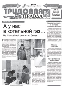 Основана 5 марта 1932 года 16+ № 6 (10819) четверг , 9 февраля 2023 года " Трудовая правда ": все о Колыванском районе . Новости Колывань и район « Трудовая правда » Веб - сайт https://trudpravda.ru/ БЛАГОУСТРОЙСТВО Наш легкоатлет – в составе сборной области ! 3-4 февраля в легкоатлетическом мане - же р . п . Кольцово прошло первенство Ново - сибирской области среди юниоров и юнио - рок до 20 лет в помещении . - Наш Роберт Малеванный стал пер - вым на дистанции 3000 метров . Отлично выступил , показав четвертый результат на дистанции 1500 метров , Владислав Сташ - ков , - рассказал тренер Александр Балах - нин . – Роберт вошел в состав сборной Но - восибирской области для участия в пер - венстве России среди юношей и девушек до 18 лет , которое пройдет 12-14 февраля в Смоленске . Поздравляем Роберта и его тренера с убедительнейшей победой ! И конечно , всем районом желаем удачи на соревнова - ниях ! Навеки в памяти В Тропино прошло мероприятие , посвя - щенное 80- летию победы в Сталинградской битве . Как рассказал жительница села Ольга Гражданкина , библиотекарь Елена Клеева и методист Татьяна Дубанова читали стихи о Сталинграде и Мамаевом кургане , говори - ли о героях сражения , а завершила все вик - торина с вопросами о битве , ставшей пово - ротным моментов в Великой Отечественной войне . Профилактика в действии Памятки по противопожарной безопас - ности вручают прохожим на улицах сотруд - ники пожарно - спасательной службы . Колыванцы и гости поселка внимательно выслушивают короткие инструктажи , а дети с восторгом трогают форму настоящих по - жарных , которые спасают людей и имуще - ство от огня . - Важно вести любую работу , которая научит людей правильно вести себя , что - бы не допустить беды , - считают многие . - А вот такие « инструктажи » очень эффек - тивны для пожилых и подрастающего поко - ления , ведь и лишнее напоминание , и то , что внимание экипажей приковано и к про - филактике , помогает осознать серьезность ситуации . Сами пожарные говорят о том , что еже - дневно они раздают больше пятидесяти па - мяток , проводят беседы , люди реагируют доброжелательно , многие благодарят за ра - боту , за напоминания о правилах пользо - вания бытовым газом , печным и электроо - борудованием , действиях при задымлении или открытом огне . П оследние технические работы , кран открыт , и голубое топли - во заструилось по трубам к но - вым газовым котлам . Жалобно ухнув и выпустив последнюю струю дыма в небо , остывал старый угольный , те - перь он вышел на заслуженный от - дых и больше в его топке не загорит - ся весёлый огонек . - Мы выполнили все технические работы , заключили договор с ресур - соснабжающей организацией ООО « Новосибирскоблгаз » и вот сегодня долгожданное событие - котельная по ул . Шоссейная , 33 переведена на газовое топливо , - рассказывает гла - ва р . п Колывань Нина Сурдина . Финансирование на газовое обо - рудование получили из областного бюджета , все остальные работы вы - полнили за счет собственных средств поселения . А у нас в котельной газ … На Шоссейной снег стал белее - В решении этого вопроса нам очень помогла поддержка со сто - роны министерства жилищно - коммунального хозяйства области , главы администрации района Евге - ния Артюхова и заместителя главы Светланы Быковой , - отмечает Нина Борисовна . Специалисты уверены , замена оборудования не скажется на тем - пературе в квартирах . А в