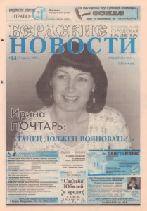 Бердскне ВРЕМЯ № 14,7 апреля Происшествия В Красной Армии штыки, чай, найдутся? Материалы сразу на пятерых нерадивых призывников были переданы из городского военкомата в прокуратуру на прошлой неделе. Четверым ставится в вину то, что они во время осенней призывной кампании не явились в военный комиссариат по повесткам, пятый вообще решил уклониться от призыва на военную службу. Труп пролежал всю зиму под забором Заявление о таинственном исчезновении пятидесятилетнего бердчанина К. поступило в городской отдел милиции еще в декабре, но до недавнего времени о его дальнейшей судьбе не было известно решительно ничего. А около двух часов дня 29 марта тело пропавшего, наполовину обглоданное какими-то грызунами, было обнаружено в сугробе на улице Промышленной, возле забора предприятия «Новосибирск- жилкомхоз». Причина его смерти точно будет установлена только после проведения судебно-медицинской экспертизы, однако во время проведения первичного осмотра трупа явных признаков насильственной смерти на нем обнаружено не было. «Залетаю я в буфет — ни копейки денег нет» В два часа дня 30 марта прямо со стола в буфете медсанчасти микрорайона кто-то незаметно умыкнул сотовый телефон «Самсунг С 500» стоимостью 5850 рублей, оставленный там одной из посетительниц. Более нагло, но тоже успешно сработал не установленный злоумышленник в магазине «Старый универмаг»: в одиннадцать часов утра 3 апреля он, как значится в милицейской сводке, открыто похитил мобильный телефон «Нокиа 6320» ценой в 10990 рублей из отдела сотовой связи. Так было после гибели Есенина Очередная волна суицидных попыток прокатилась по Бердску на прошлой неделе. Двадцатипятилетняя жительница улицы Боровой наглоталась 29 марта каких-то таблеток. Двадцатидвухлетняя А. 30 марта предприняла попытку отравиться клофелином. Двое изрядно пьяных пациентов поступили в приемный покой медсанчасти микрорайона 1 апреля: и 26-летний Л. с микрорайона, и 32-летний К. с улицы Спортивной вскрыли себе вены. На следующий день туда же была доставлена 23-летняя жительница улицы Кирова — девушка приняла большую дозу медикаментов. А вот 55- летний Д., живший на улице Черняховского, вечером 3 апреля ушел из жизни безвозвратно: он повесился в бане возле своего дома. Конференция Вот оно какое — современное студенчество Студенты Бердского техникума менеджмента и рынка недавно подтвердили глубокие знания в области гостиничного и туристического бизнеса, став дипломантами 1 степени областной научно-практической конференции «Современное студенчество: развитие образования, культуры, науки и техники». Конференция проходила в Новосибирске. Активное участие в ней приняли студенты Бердского медицинского колледжа, БЭМТа и Бердского техникума менеджмента и рынка. Члены жюри отметили, что возросла культура предоставления докладов, а работы студентов были основаны на практических исследованиях. Директор техникума менеджмента и рынка О. И. ШАМАНОВА считает, что ее ученики - самые талантливые. Модные тенденции «ШИК» - одежда для прогрессивных женщин Какая женщина не хочет чувствовать себя красивой, привлекательной, уверенной в себе — на работе, дома, на улице. Немаловажную роль в создании неотразимого имиджа играет одежда: правильно подобранный костюм или платье подчеркнет достоинства женщины, придаст ей обаяние и 
