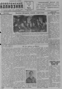 Д О В О Л Е Н С К И Й К0ЛК03НИК Орган Доволенского райкома депутатов трудящихся КПСС и районного Совета Новосибирской области Международный женский день 8 марта советские женщины встречают новыми трудовыми успехами на Цена 10 коп. всех участках строительства. коммунистического . П р а з д н и к т р у д я щ и х с я ж е нщ и н Международный женский день 8 марта советские женщины отмечают в нынешнем году в обстановке огромного трудового и политического подъема, вызванного XX съездом Коммунистической партии Советского Союза. Трудящиеся нашей страны под руповод- ~ ством Коммунистической партии в братском сотрудничестве с народами всего социалистического лагеря но следовательно отстаивают дело мира, настойчиво борются за ослабление международной напряженности, за коллек- ■ тивную безопасность народов. Единодушно одобряя внеш- и ш ю и внутреннюю политику Коммунистической партии и ее ленинского Центрального Комитета, советские люди заявляют о своей твердой решимости самоотверженно трудиться над успешным претворением в жизнь решений XX съезда партии. Б этой всенародной борьбе огромную роль играют советские женщины. Их кипучая, неутомимая деятельность на фабрич к а * н заводах, в колхозах, ^МТ< и совхозах умиижает богатство нашей социалистической Родины, поднимает ее славу и международный авторитет. Выполняя ленинский завет, советские женщины активно участвуют в управлении государством. Так, у нас 108 женщин—депутаты районного и сельских " Сонетов депутатов трудящихся, 26 родные заседатели. Советские женщины имеют равные права с мужчинами на труд, на отдых, на образование. Получают одинаковую оплату за равный труд. Государство выплачивает большие средства одиноким и многодетным матерям. В нашем районе только за 1955 год эти выплаты составили 1.525 тысяч рублей. В день Международного женского праздника трудящиеся нашего района отмечают имена передовых тружениц колхозного и совхозного производства тт. Гришаевой, Лункиной, Громовой, Нонда- ] онко, Елисеевой, Белоусовой и многих других, чьими руками вносится все больший вклад в дело дальнейшего подъема сельского хозяйстга, а также имена учительниц, агрономов, зоотехников и других. Удвоить производство сельскохозяйственной продукции не в шиъ,а в полтора-два года—вот ответ работниц животноводческих ферм колхоза в и совхозов нашего района на решения XX съезда КПСС.Пожелаем ж§ всем женщинам нашего района новых успехов в труде, в учебе, в культурной и общественно - политической жизни, в воспитании детей— будущих строителей коммуЗнатные женщины страны социализма Женщина » Советской стране-великая сила. Нет такой области в которой женщина не играла бы активной роли, давая замечательные образц I ского служения Родине. ■ . г,та НА СНИМКЕ: группа знатных женщин Москвы. Сидят (слева направо)— лауреат линской премии композитор Т. П. Николаева, инженер-технолог 1ражданского флота Г. П. Соловьева, депутат Верховного Совета РСФСР директор В. И. Шипова, народная артистка СССР Е. Н. Гоголева, лучший „ метрополитена имени В. И. Ленина Е. М. Хоролец, член Советского комитета Щ | мать-героиня А. Г. Балашова; стоят (слева направо)— делегат XX съезда Ы1СС мастер фабрики «Парижская коммуна» Л. С. Савельева, знатный токарь предприятия Гра;аданского воздушного флота В. И. Голанская, борт-радист Гражданского воздушного>фл. а 