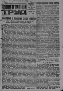 в v* г. Н.-Сибирсн, Крайком ВКП(б), 3 Сектор печати ( i эк з .) Проле1 -.рии 0|>РЛ Орган Нарасукского Райкома БКП б) я Райисполкома. Западно-Сибирского края Выходит 1 раз в5 дней Ст. Карасук 1S Я Ш Р Н 3 5 Г. На 2 ( 3 4 6 ) второ!кроовойс'езд советов ОБРАЩЕНИЕ И КРАЕВОГО С‘ЕЗДА СОВЕТОВ ио всем рабочим, колхозникам и агротехническим работникам Западной Сибири Товарищи! Не за горами зов, но классовый враг еще 1-2о января в 5 часов 30 ми нут вечера в клубе имени МЕНЖИНСКОГО краткой вступительной речью председателя Краб исполком а тов ГРЯДИНЕКОГО был открыт второй краевой с езд советов, С'езд избрал президиум в со ставе 55 человек, в числе их товарищи.' ЭЙХЕ, ГРЯДИН СКИН, СЕРГЕЕВ. ВОРОНИН, КУДРЯВЦЕВ, ШВАРЦ u др Секретариат избран из 13 не ловец, мандатная комиссия- аз 12 человек. Под бурные аплодисменты с’езд избирает в почетный президиум ты . СТАЛИНА, КА ГАНОВИЧА. МОЛОТОВА, ЖДА НОВА, ТЕЛЬЛТАНА, М. ГОРЬКО ГQ а других - л t Первыми^ выступала с рапор то.мп* c 'e tdy представители Сталинского металлургичес- рого&авода и делегация воинских кистей но осибирского гсфнрзанф. *" "Сея'д послал приветствен IftpoK, когда на полях Запад ной Сибири развернется весенний сев. Весение-посев « [ ^кампания этого года гжна быть проведена в е более сжатые сроки . еше более высококачествен ио, более организованно, чем в прошлом году. Эго дело чести колхозников и рабочих совхозов, всех агротехнических работой ков Западной Сибири, на гражденной высшей проле тарской наградой —орде ф н о м Ленина. Успешное про ^ в е д ен и е весеннего сева основное условие дальней шего укрепления и рсста хозяйственной мощи совхо sob и колхозов, важнейшее условие вфвых побед борьбе за претворение в жизнь лозунга нашего лю каждого колхозника за по которого долэедмьодкь зако бвмого вождя тов. Сталина ^«сделать все колхозы боль шевистскими и колхозни ков зажиточными». Между тем подготовка к севу в большинстве рай онов края идет совершенно иеудовлетвирительно. Боль шинство колхозов и совхо зов Западной Сибира не развернуло още по-больше внотска подготовку к весен ному оеву. Во многих кол хозах а еовхоэах не заеы ■аиы сошеяа, во отрежоятя ровен» свльхозмаяшим, Бе вобраано медленно раввер тывается ремонт тракторов. Мало внимания уделяется ■одготовке к севу колхоз ного коня, еще не везде забронировано достаточное количество концентратов и лучшего сена для весенае посевной кампания. Такое положение больше нетерпимо. Немедленно дол тжеа быть создан перелом в ликвидировано отставание. Подготовка к севу в кодхо вах Западной Сибири долж на быть организована об разцово, как это подобает колхозам н совхозам орде ■оносного края. Товарищи колхозники, то вар ищи рабочие oobxosob! И адо твердо помнить, что весенняя посевная кампа ния в этом году будет про ходить в трудных уело виях. Подготовленной к се ву земли мало. Большую чаоть сева придется прово дить по весновспашке, „ Товарищи колхозники и рабочие совхозов! Классово враждебные элементы из ГЩ Ш в ОСНОВНОМ ИЗ кодхо л* не добит. Надо твердо пом нить, что остатки разгромленных классовых врагов используют малейшую на шу оплошность, малейший наш недогляд для своей редительской, подрывной работы. Высокая революцн •энная бдительность и же лезиая непримиримость к врагу —вот что прежде вес го необходимо для успеха весеннего сева. Разоблачай те и добейте до конца последышей кулачества. Бор