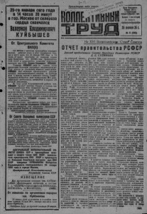 25-го января сего года в 14 часов 39 минут в гор. Москве от склероза сердца скончался Вшрнш Ешииинп К У Й Б Ы Ш Е В От Центрального Комитета ВКП(б) ЦК ВКП(б) с великим прискорбием извещает партию, рабочий класс и всех трудящихся страны и всего мира, что 25 января 1935 года в 14 часов 30 минут скончался от склероза сердца член Политбюро ЦК В«П(б), зам. председателя СНК СССР и председатель комиссии советского контроля при СН{С Валериан Владимирович КУЙБЫШВЕ Товарищ КУЙБЫШЕВ умер на соевом посту продолжая большую партийную напряженную, работу вплоть до последнего момента своей жизни. КУЙБЫШЕВ был образцом пролетарского революционера, последовательного денница, не примири мым к врагам партии и рабочего класса, самоотверженным бойцом за дело коммунизма. Вго революционная деятельность начинается в период 1-Й русской революции. За годы своей большевистской работы тон. КУЙБЫШЕВ арэшел* царские тюрьмы и ссылки, как самоотверженный боец ленинской партии. В годы гражданской войны •тов- КУЙЫБШЕВ являлся одним из виднейших руководителей красной армии, крупнейшим организатором и руково- дителем нашего государственного и хозяйственного строительства. Тов. КУнБЫШЕВ отдавал все свои силы делу социализма. Безграничная неутомимая работа для блага трудящихся Ешрвш Владшровича КУЙБЫШЕВА будет служить примером для миллионов пролетариев ij в их великой борьбе за коммунизм. ЦЕНТРАЛЬНЫЙ КОМИТЕТ ВСЕСОЮЗНОЙ КОММУНИСТИЧЕСКОЙ ПАРТИИ (большевиков) От Совета Народных комисаровССР Совет Народных комиссаров СССР с глубокой скорбью извещает рабочих и крестьян и осех трудящихся о безвременной смерти от склероза сердца 25 января сего года в Москве, одного из лучших руководи телей нишей партии и Советской власти, оргинизато ра социалистического хозяйства, преданного борца за дело коммунизма, члена Политбюро ЦК, первого заме стителя председателя СНК СССР, председателя Комиссии Советского нонтроля ВАЛЕРИАНА ВЛАДИМИ РОВИЧА КУЙБЫШЕВА. СНК СССР вместе со всемя трудящимися страны скорбя по поводу невозвратимой утраты хрустальночистого большевика то*. КУЙБЫШЕВА, выражает твердую уверенность в том, что его славная жизнь. революционного бойца строителя, социализма будет служить примером для всех революционеров. Совет Народных Комиссаров Союза ССР ЦЕНТРАЛЬНЫЙ ИСПОЛНИТЕЛЬНЫЙ КОМИТЕТ СОЮЗА ССР о прискорбием извещает о смерти члена ЦИК СССР, заместителя председателя СНК СССР и председата ля Комиссии Советского контроля при СКК СССР товарища КУЙБЫШЕВА - Валериана Владимировича последовавшего 25 января 1835 года в городе Москве, Центральный Исполнительный Комитет Союза ССР И З В Е Щ Е Н И Е Для организации похорон Т®в. КУЙБЫШЕВА 4организована комиссия в составе т, т. ЧУБАРЯ,—(председатель), ЕНУКИДЗЕ, АНТИПОВА, и ФИЛАТОВА. (ТАСС). -1-------------------------- От комиссии по организации похорон тов. Куйбышева 26 января гроб установлен л колонном вале дома Союзов. Ничью 2б г^ января сосюятси пихо роны—кремация. Похороны будут на Красной площади 27 января ■am»t Пролетарии всех стран Орган Кара&уксксго Райкома ЗИПб) к Райисполкома Западне Сйбиренего края Выходит 1 раз ■5дней Ст. Карасук 26яшря 35Г. № 5 (349) На XVI Всероссийском С‘езд(Г Советов — ■—■— — ——......... ■■»'■............... . .» ОТЧЕТ п р а в и т е л ь с т в а Р СФС Р Доклад председателя Совета Народных Комиссаров РСФСР Д. Е. СУЛИМОВА —За отчетный оер