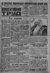 s I I Д1 ЗДРАВСТВУЕТ Пролетарии всех стран, соеаиняйтесь! Орган Карасукского Райкома ВКП(б) н Райисполкома Западно Сибирского края Выходит 1 раз вБ'дявй Ст. Карасук..vji»'* Г 1 ' ------- 8марта1935г. № 12 (355) .ЧТО КАСАЕТСЯ САМИХ КОЛХОЗНИЦ, ТО ОНИ ДОЛЖНЫ ПОМНИТЬ О СИЛЕ И ЗНАЧЕНИИ КОЛХОЗОВ ДЛЯ ЖЕНЩИН, ДОЛЖНЫ помнить, что ТОЛЬКО В КОЛХОЗЕ ИМЕЮТ ОНИ ВОЗМОЖНОСТЬ СТАТЬ НА РАВНУЮ НОГУ С МУЖЧИНОЙ. БЕ8 КОЛХОЗОВ— НЕРАВЕНСТВО, В КОЛХОЗАХ— РАВЕНСТВО ПРАВ. ПУСТЬ ПОМНЯТ ОБ ЭТОМ ТОВАРИЩИ КОЛХОЗНИЦЫ И ПУСТЬ ОНИ БЕРЕГУТ КОЛХОЗНЫЙ СТРОЙ, КАК ЗЕНИЦУ ОКА*. СТАЛИН марта Международный женский — это день междуна родной солидарности трудя щихся работниц и кресья нок всего мира. Международный женский день — день борьбы, это день, когда весь пролетариат в целом, а не одни только работницы борятся аа раскрепощение женщин от цепей рабства, от цепей крепостнического и капита листического строя, от це пей того мепкособственни ческога уклада, когда жен щина была прикована толь ко к своему «очагу» к свое му хозяйству, к своим де тем, когда она была отреза на от всякой политической и общественной жнэни, от воякой борьбы, была во вла сти религии и темных слу цОВ. 8 е Марта работницы и крестьянки СоветскогоСоюаа встречают в условиях, ког да наша страна стала одной из самых индустриальных стран в мире, когда мы ста ли страной самого*крупного в мира механизированного земледелия, когда з стране на уклонно растет грамот ность, культурность и мага риальное положение трудя щихся масс советского со юза. Работницы и крестьянки стран кглиталиэм а ветре чают в этом году междуна родный женский день в уело виях продолжающего эконо мического кризиса, в уело виях безработицы, лишив шей хлеба и крова милио нов пролетариев капиталке тических стран, ^Доведенные до отчаяния кризисом и нуждой трудя щиеся женщины капиталис тических стран становятся на путь революции. Все бо лее растет в капиталисти ческих странах революцион ная решимость трудящихся бороться до конца против угнетателей, против влвети капиталистов, sa их свер женив, за советскую власть, До октябрьской революции трудящиеся женщина в нашей стране была жерт вой угнетения, произвола и ди кости . Только пролетар окая революция сделала жнань женщины в нашей ране счастливой, светлой р а д о с т н о й . .'.'.тябрьская революция уравняла перед законом ЖбИЩИну о мужчиной, Партия ЛЕНИНА - СТАЛИНА придавала и придает громад нов значение делу вовлече ния женщины в обществен ную работу. В нашем районе большое и важное место занимают женчины. Так например на работу председателем сельсовета выдвинулась женщина-.-кол хозница АННА ВАСИЛЬЕВНА МЕЛЬНИКОВА (председатель БЛАГОДАТСКОГО СЕЛЬСОВЕТА), тсв. АЛЕКСАНДРОВА (председа тель колхоза «КРАСНЫЙ ВЫСЕ ЛОКО, тов: БЕЛОКОНЕВА (зав . МТФ колхоза .ВПЕРЕД К КОМ МУНИЗМУ»)- Сотни лучших женщин - ударниц нашего района ра ботеют на ответственном участке. Это — животновод ство. Всем надо работать та к , ка к работает поярка ФИЛИПЕНКОВА из колхоза .МАЯК ИЛЬИЧА- Тле ФИЛИПЕНКОВА вы поила всех порученных ей телят, Прекрасно работают на животноводстве доярками тов. УГРЮМОВА МАРИЯ, к ХАТЮШИ НА МАРИЯ из колхоза «НОВЫЙ ТРУД» Приближается большовнет окая весна Итог энергичная подготовка к севу. Скоро колхозные массы выйдут на поля, чтобы з&воевать высо кий урожай. КОЛХОЗНИЦЫ И РАБОНТИЦЫ СОВХОЗОВ! В ДЕНЬ 8 МАРТА РАЗ ВЕРНИТЕ ПОДЛЕНН