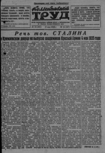 ' л ._________ / ^ПОРА ЗАЯВИТЬ ПРЯМО, ЧТО ГЛАВНОЕ ТЕПЕРЬ— В ЛЮДЯХ, ОВЛАДЕВШИХ ТЕХНИКОЙ... НАДО БЕРЕЧЬ КАЖДОГО СПОСОБНОГО И ПОНИМАЮЩЕГО РАБОТНИКА, БЕРЕЧЬ ИВЫ РАф1ВАТЬ ЕГО*. (СТАЛИН. Из беседы с металлургами 26 декабря 1934 года) ОРГАН КАРАСУКСКОГО РАЙКОМА ВКП(б) и РАЙИСПОЛКОМА £т. Карасук, Западно-Сибирского края № 24 (367) 12 мая /935 г. № 24 (367) Пролетарии всех стран, соединяйтесь! „НАДО, НАКОНЕЦ, ПОНЯТЬ, ЧТО ИЗ ВСЕХ ЦЕННЫХ КАПИТАЛОВ, ИМЕЮ ЩИХСЯ В МИРЕ, САМЫМ ЦЕННЫМ И САМЫМ РЕШАЮЩИМ КАПИТАЛОМ ЯВЛЯЮТСЯ ЛЮДИ, КАДРЫ. НАДО ПОНЯТЬ. ЧТО ПРИ НАШИХ НЫНЕШНИХ УСЛОВИЯХ КАДРЫ РЕШАЮТ ВСЕ“. (СТАЛИН. Из речи на выпуске академиков Красной армии) Ре ч ь moBt СТ АЛИНА }КрмелевосмкдворцевовыпскиеакадемиковКрасйнДомик 4 мой 135 года Товарищи! Нельзя отри дать,-.что за последнее вре дя мы имели большие успе си как в области строитель :тва, так и в области уора ления. В связи с этим слиш сом много говорят у вас о десдщвд руководителей, о lacAjSc вождей. Им припи :ывают все, почти, все наши достижения. Эго, конечно, северно и неправильно Де о не только в вождях. Но не )б этом я хотел-бы говорить егодня. Я хотел-бы сказать весколько слов о кадрах, о наших кадрах вообще и, в частности, о кадрах на шей Красной армии. Вы знаете, что ми полу шли в наследство от старо о времени отсталую тех ически и полунищую, ра торённую страну. Разорен аая четырьмя годами импе иалистической войны, пов орно разоренная тремя годами гражданской войны, страна с полуграмотным населением, с низкой тех икой, отдельными оазиса ии промышленности, тонув Шими среди моря мельчай -лих крестьянских хозяйств,- от какую страну получи* и мы в наследство от рошлого. Задача состояла в том, тобы эту страну перевести рель средневековья и тем коты на рельсы совремев ой индустрии и машини ованного сельского хрзяй гва. Задача,\ как видите, серьезная и трудная, Во трос стоял так: либо мы эту дедачу разрешим в крат айший срок и укрепим в нашей стране социализм, ибо мы ее не разрешим и югда наша страна—слабая ехаячески и темная в ул^урном отношении—рас еряет свою независимость превратится в об‘ект игры империалистических держав, Наша страна переживала тогда период жесточайше 'о голода в области тех икр. Не хватало машин ля индустрий. Не было ашия для сельского хозяй :тва, Не было машин для p a H c n o p ta . Не было той демеытарной технической ады, без чего не мыслимо ндустриальное преобразо ание страны. Были только тдельиые предпосылки ля создания такой базы «до 0«до создать дер- -ъ > воклассную индустрию. Надо была направить эту индустрию на то, чтобы она была саособна реорга низовать технически не только промышленность, но и сельское хозяйство, но и наш железнодорож ный тронспорт, А для этого надо было пойти на жертвы и навести во всем жесточай шую экономию. Надо было экономить и на питании, и на школах, и, на ману фактуре, чтобы накопить необходимые средства—для создания индустрии. Друго го пути для изживания го лода в области техники не было: Так учил вас Ленин, и мы шли в этом деле по стопам Ленина. Понятно, что в таком большом и трудном деле нельзя было ждать сплош ных и быстрых успехов. В та ком деле успехи могут обозначиться лишь спустя несколько лет. Необходимо было поэтому вооружиться крепкими нерва ми; большевисткой выдерж кой и упорным терпением, чтобы преодолеть первые неудачи и неуклонно ит ти вперед к великой цели, недопуская колебаний и неуве