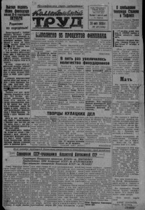 Высоко поднять йоня фиипощп имени 18-й годощнйы ОКТЯБРЯ! Равнение по передовым! Шнлово-Курьи^ски^ и Беленский сельсоветы возглавляй:! е районе шониу ударников финансового похода имени 18 йгодовщины Великой вролетарсксй революции. Шилопо- нурьинцы за первые две декады октябре выполнили финплан IV-го п $ щ М в 95 процентов, белен- цы—-на 50 процентов. В то же время в райояе есть н танке сельсоветы, работа которых позорит район. К таким сельсоветам • вервуш очередь относится Лело- кудеский сельсовет, выполнявший финплан IV-ro квартала только и 24 процента. Не менее позорна работа потребительской кооперации, вобравшей за октябрь только 998 рублей, о то время как недовыполнение голового плана по паевым составляет 23525 рублей (вз 40000 рублей годового плава). В результате оппортунистической I практики работы ряда сольсннх со- '■ вотов я сельпо образовалась большая сумма просроченной задолженности по всем видам платежей к еборйЦ:ставшим свыше двухсот тыевч^ублей. Покрыть этот долг пролетарскому государству, встретить 18 й Октябрь дос * речным выполнением фин- ллана IV го квартала— почетнее революционная задача. Она является осью всей работы по аюбнлмзацяя средств. Она пю%чш ипвыше воднятом знании оредоятябрьехого финансового похода в Шняоао-Курьхнском, Беленском о других передовых сельсоветах. Выйти ва одну линию, стать в одну шеренгу с шилово нурьхнцаын и бвлвнцамн— дело чести всех сель схих советов, сельпо и всех обще отзвквых организаций колхозной дорвали нашего района. 41ятм позорнойработы, подобные тем, поторыа всть сегодня в Лепо- куровеком и других сельсоветах и кооперативных организациях должны быть омыты к веянной годовщине Октября большевистскими поборами блестящими образцами стахановской работы ка финансовом фронте. №Пролетарии всех стран, соединяйтесь/ Орган Карасукского Райкома ВКП(б> и Райисполкома Заи.-Сиб. края Выходит 1 раз в 5 Ст. Кэрасук 31 ОКТ 1Э35Г. М 49 (403) БЫПОЛНЕНО 95 ПРОЦЕНТОВ ФИНПЯДНД Прекрасные образцы большевистской борьбы за финансы показывает Шило- во-Курьинский сельсовет (председатель—комсомолец тов. Фисенко). Сельский совет уже имеет 95 процентов выполнения финзпана IV-ro квартала. За две декады октября квартальный план сверхокладного страхования в 2000 рублей выполнен с превышением на 1000 рублей. «Секрет» успехов заключается в том, что сельский совет окружил себя кадрами многочисленного финансового актива и превратил финсекцию в одну из самых боевых организаций. Сталинский поход и конкурс-соревнование сельских советов в Шилово- Курье использовали как могучие рычаги мобилизации масс и сплочения их на ударное решение стоящих задач, л том числе и в области мобилизации средств. В результате из квартала в квартал финансовый план выполнялся досрочно и с большим пре вышеннем. Количество финансового актива удвоилось (было 14 человек, стало 28). Работа Шилово-Курьин- -ского сельсовета-прямой укор всем отстающим и плетущимся в хвосте ердь- советам. Она говорит об огромнейших 'возможностях района в части мобилизации средств, которых (возможностей) не видят и не умеют использовать только ротозеи и оппортунисты. НИКУЛИН В пять раз увеличилось количество финударников Беленский сельсовет тивом на деле показывают (председатель т. Тыртыш каким должны быть лтяха- ный) до развертывания в ловцы финансовой работы районе стал инского по
