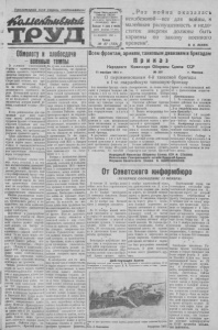 Пролетарий всех стран, соединяйтесь! ТРУД •"-'Л!и.-Л1. J ______ J... и±.._ .■ . I ............. I I I I ИНН . I ■ I!.l!. I... Оргаи Караеужс-ког» ' Райкома ВКП(б) ж Районного Совета депутатов трудящихся Алтайского края Выхедо 4 раза в месяц цена номера 13 коп, 19 НОЯБРЯ 1941 г. Среда № 61 { 75 2)J „Раз война оказалась неизбежной — все для войны, и малейшая распущенность и недо статок энергии должны быть караемы по закону военного времени . в и . ленин . Обмолоту и хлебосдаче -военные темпы В условиях ожесточенной борьбы с зарвавшимися пол чищами кровавого германского фашизма завершаем мы теку щий сельскохозяйственный год. Скоро пять месяцев, как про должается гигантская борь ба за счастье, свободу, и независимость советского на рода. Истекающий кровью враг еще си.йен, в смертельной ярос ти он продолжает рваться к жизненным центрам нашей ро дины, к любимой столице — Мос кве. В эти решительные дни свя щенный долг всех совет ских людей, работающих на трудовом фронте — с невиданной энергией трудиться для под держки фронта, для снабжения фронта всем, что требуется для разгрома кровавого врага. Среди важнейших оборонных задач по увеличению наших ре сурсов первое место занимает полное и высококачественное завершение обмолота и скорей шее выполнение обязательств перед государством. Хлебопоставки — первая запо ведь перед отчизной, и па тем пах их выполнения , проверяет ся воля к победе, желание и умение^всемерно, крепить наш отпор смертельному врагу — гер манскому фашизму. Сейчас нет более важной задачи на селе, чем организация колхозных масс на скорейшее проведение обмолота и выполнения всех государственных обязательств. Многие руководители колхо зов сумели быстро, по-военно му, организовать работу и мо билизовать все силы колхозни ков на досрочное выполнение плана хлебосдачи. Партийные и ¿непартийные большевики колхоза им. Карла Маркса, Прбизинского сельсо вета отлично держат партий ный экзамен, они быстро за кончили обмолот, досрочно справились с планом хлебопос тавок. То же самое можно ска зать о других колхозах — пере довиках нашего района: кол хоз «2-я пятилетка», «Мирго род», «Вперед к коммунизму» имеют 100 — процентное выпол нение плана хлебозаготовок. Целый ряд передовых колхо зов вывозят последние десятки центнеров натуроплаты. Однако, успехи передовых кол хозов не могут скрыть крайне неудовлетворительное положе ние с выполнением плана хле бопоставок по району в целом. На 10 ноября наш район вы полнил план хлебосдачи лишь на 60 процентов. Особенно тревожное положение с вывозкой хлеба в колхозах Хорошенской в Паленкой МТС. Среди колхо зов Хорошенской МТС нет ни одного, завершающего хлебо сдачу. Колхозы «Краснофлотец» и «Ясный луч», Паленкой МТС, не сдали еще и 30 процентов требуемого от них по плану хлеба. Только лишь третью часть планового задания сдали колхозы «Майское утро», им. Петровского, «Красный колос». Не лучше положение в колхозе им. Ворошилова, где председа тель колхоза т. Химич не исполь зовал богатых возможностей колхоза для своевременного вы полнения плана хлебозаготовок. Слабые темпы хлебопоста вок и обмолота об'ясняются плохим руководством и отсутст вием умелой организации тру да, правильной расстановки людей и максимального исполь зования тягловой силы, люд ских кадров и инвентаря. Так, в Карасукской МТС, несмотря на указания Райкома партии, тр