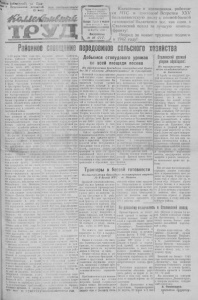 «»«лов (областной) у /i. Пу/й- У Всесокозной кнкжной оан, соединяйтесь'. «et it ^" ,| " l " l№ " 6 Орган Кяраеукского V * Райкома ВКЩб) и Районного Совета депутатов трудящихся Алтайскою края Выходит 2 раза в неделю цена номера 7 sou. JÓ МАРТА 1942 г Воскресенье Л> 16 (777) J Колхозники и колхозницы, работни ки МТС и совхозов ’ Встретим XXV 4 большевистскую весну, полной боевой готовности! Включимся все, как один, в Сталинский поход за лучшую помощь фронту! Вперед за новые трудовые подвиги в 1942 году! Районное соооетие передовиков сельского хозяйства 9-10 марта 1942 года про ходило районное совещание передовиков сельского хозяй ства. В совещании принимали участие около 400 лучших патриотов колхозного села, большую часть делегатов со ставили женщины — активист ки хозяйственно-политической работы. Стахановцы колхозов и ферм, бригадиры полевых и тракторных бригад, руково дители колхоз -в, МТС, совхо зов и сельиспслкомов, секрета ри парторганизаций по боль шевистски обсудили на сове щании огромные и важнейшие задачи, стоящие перед районом в наступающем сельскохозяй ственном году в условиях оте чественной войны. С обширным и содержатель ным докладом по основному вопросу — об итогах истекшего сельскохозяйственного года и боевых задачах работников сельского хозяйства района в 1942 году, выступил секретарь Райкома ВЕП(б) т. Золотов. Ид фактах и примерах об разцовой работы передовиков сельского хозяйства и живот новодства то.в. Зало,тов пока зал как лучшие люди колхо зов, МТС и совхозов претвори г т В'йспзггъ призыв великого вождя народов товарища Сталина о подчинении всей ра боты интересам фронта, зада чам помощи фронту. Доклад чик подчеркнул, что мы имеем Целый ряд доблестных труже ников колхозных полей, пат риотов — передовиков тр удово- ГО фронта. 11 если бы все на ши колхозники работали так Же образцово, как мастер ком- байноуборки тов. Квашнин, Убравший 749 гектаров и дав ший экономии горючего 986 кг., как славные вязальщицы колхоза «Память Ильича» Ан ка Цюпко и Ольга Чухиль, навязывавшие в день по 2019 снопов и десятки дру гих передовиков сельского хо зяйства, то итоги истекшего сгльскохозяйствепного года, бе зусловно, мы подводили бы гораздо раньше, а показатели имели бы намного лучше. — Хотя решение зедачи ве- Се ннего сева в 1942 году бу дет значительно труднее, — го ворит тов. Золотов, — мы обя заны преодолеть эти трудно сти. Весенний сев в 1942 ГО ДУ должен быть проведен в предельно сжатые сроки и дальнейшие огромные задачи, с высоким качеством. участники совещания в при- Первостепенное значение для нятом обращении ко всем кол- Успешного проведения весенне- хознскзм и колхозницам райи- го сева имеет высококачест- на призвали их включиться в Ценный и своевременный ре- Сталинский поход за лучшую Монт тракторного парка и 1ш мощь фронту, упорно бороть- сельхозинвентаря, а ’ также ся за 100-нудовый урожай с подготовка конского поголовья каждого гектара зерновых и 11 всего живого тягла. Но ре монт тракторов в районе дале ко еще пе закончен. Особенно Цетерпимое отставание в ре монте тракторов мы имеем в Налецкой МТС. Директор МТС т - Аыщук. не перестроил рабо- Т У в соответствии требований военного времени, в резуль- Чте чего по существу провалил ремонт тракторов. Б ольшой внимание уделил тов. Золот- .. подготовке семян к несение/у севу. Особенно подчеркнул докладчик . задачу своеврем